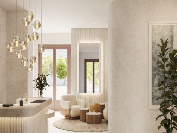 The interiors of the apartments are equipped with modern features that ensure comfort and functionality. Each unit comes with high-quality appliances, built-in wardrobes that optimize space, and a video intercom that adds an extra level of security. The layout options include 1, 2, or 3 bedrooms and 1 or 2 bathrooms, adapting to different family needs. The presence of terraces in each apartment allows for a seamless connection between indoor and outdoor spaces, maximizing natural light and living space. These interior details are carefully selected to offer a cozy and modern home.