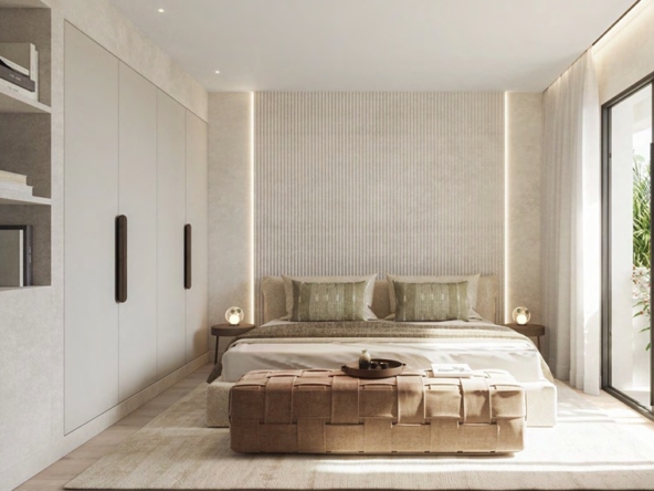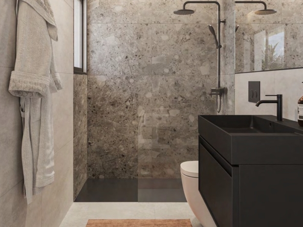 The exteriors of this residential in Estepona are designed to complement the Mediterranean lifestyle. Each apartment features a private terrace, perfect for enjoying the sunny weather and views of the natural surroundings. The proximity to the sea, just 2 km away, adds invaluable value, allowing residents to enjoy walks along the beach and outdoor activities. The common areas include a community gym and a swimming pool, offering spaces for exercise and relaxation without needing to leave the complex. These outdoor elements are designed to offer a complete and satisfying living experience.