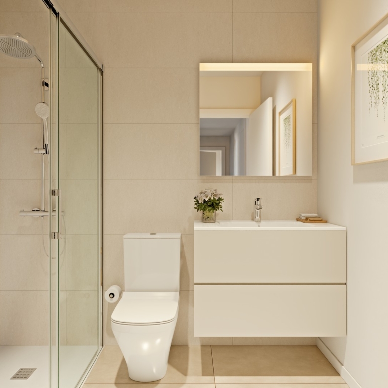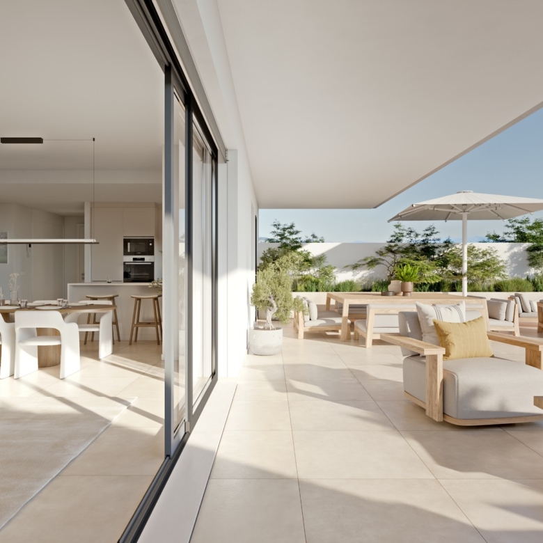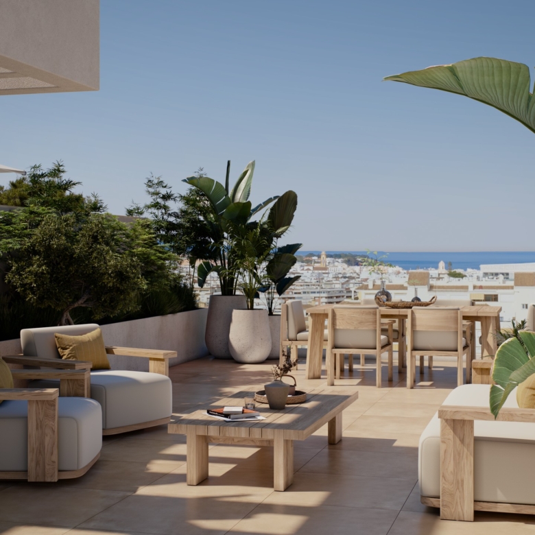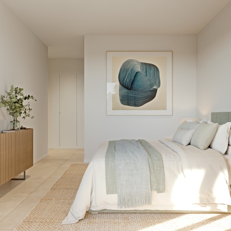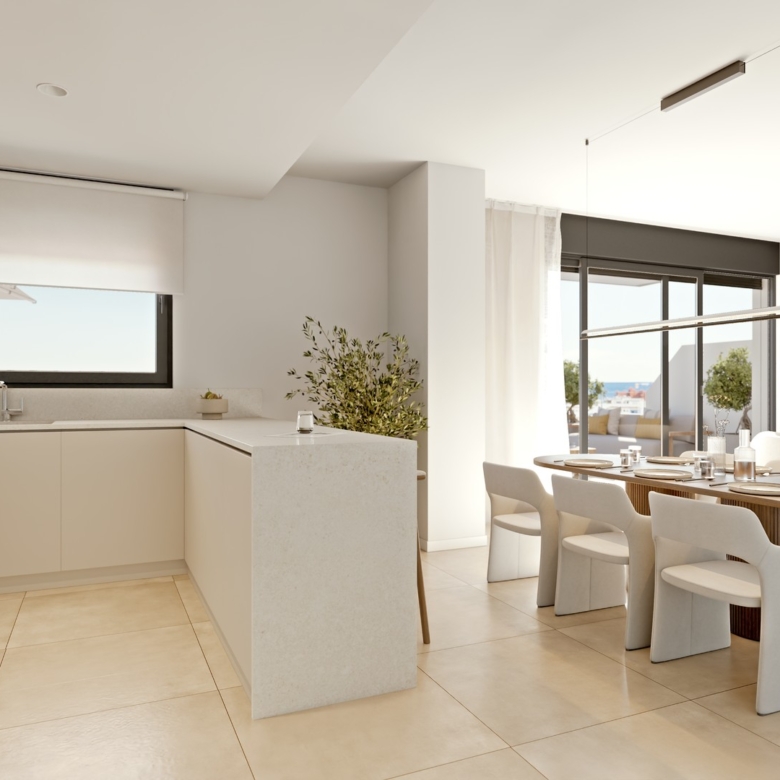 The exteriors of these properties are designed to maximize enjoyment of the Mediterranean climate. Each home features a private terrace, perfect for outdoor relaxation. The penthouses also have a solarium, offering additional space to enjoy the sun and views. For those who value privacy, some properties include a private pool, creating a personal oasis at home. Access to an electric car charging point reflects the commitment to sustainability and modern convenience.