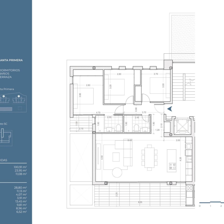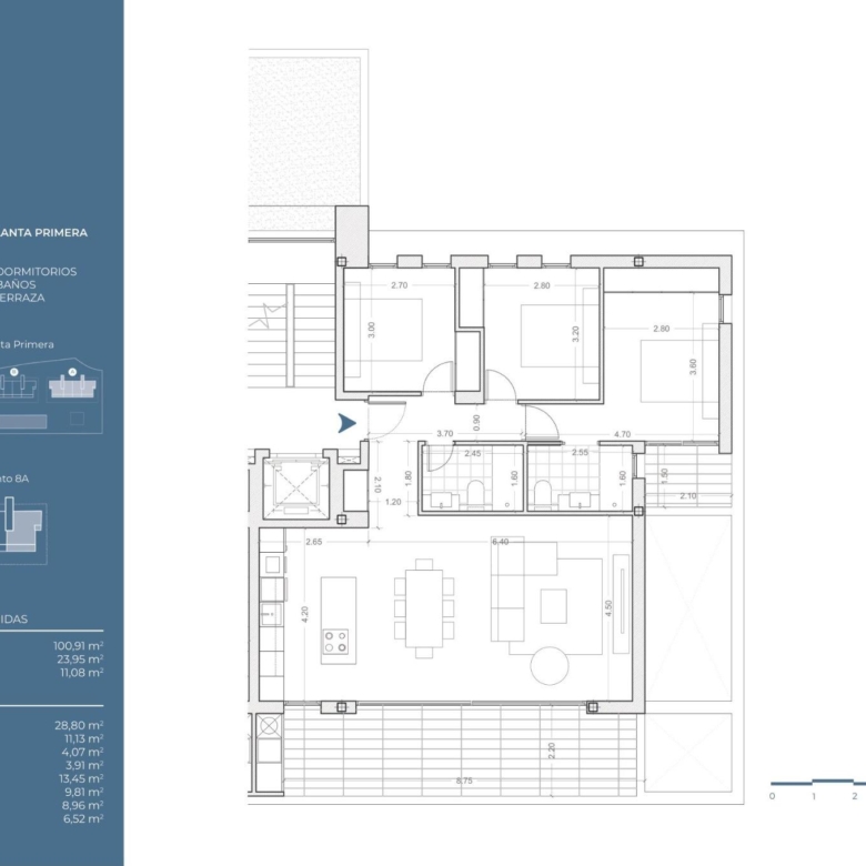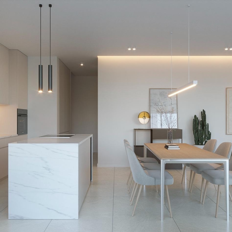 Modern properties with 2 and 3 bedrooms, all with 2 bathrooms, open plan kitchen with spacious living room, fitted wardrobes, terrace, underground parking space.