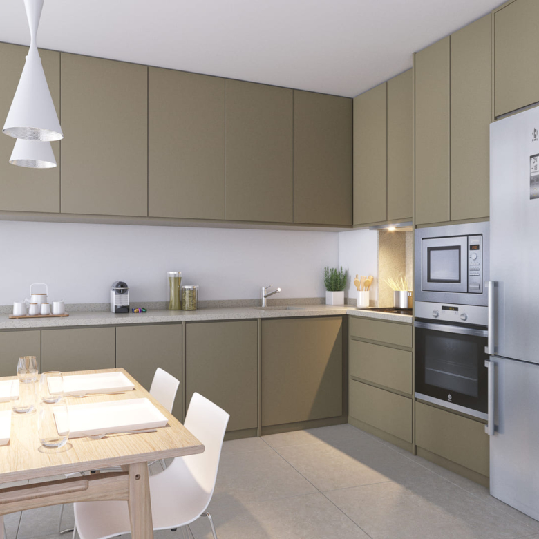 The interiors of the homes in this Manilva residential are carefully designed to offer comfort and style. The porcelain stoneware floors add a modern touch and are easy to maintain, while the included appliances ensure each home is ready to be lived in from day one. Built-in wardrobes provide efficient storage, optimizing the available space. The homes are available in 2 and 3-bedroom configurations, all with 2 bathrooms, allowing for adaptation to different family needs. The layout includes a garage and terrace, and in some cases, a garden, offering a versatile space for daily living.