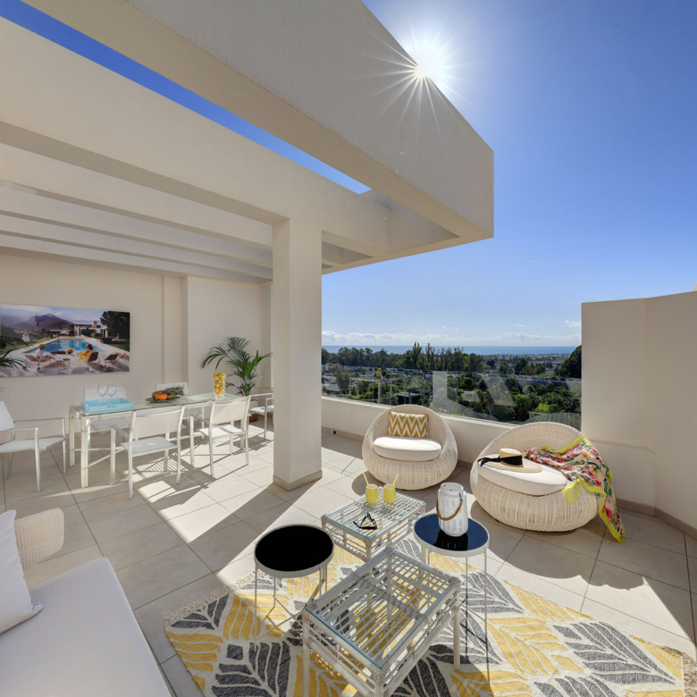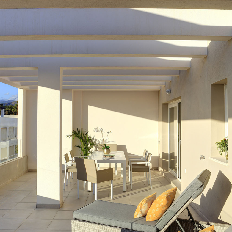 The exteriors of these apartments in Marbella are designed to complement the natural surroundings and offer an outdoor lifestyle. Each unit features a private terrace, perfect for enjoying the Mediterranean climate and stunning sea views. The communal garden areas provide a green space where residents can relax and enjoy nature. Additionally, the community offers a solarium where you can sunbathe and enjoy moments of tranquility. The proximity to the sea, just 3 kilometers away, allows for coastal walks and water activities, making this location ideal for sea lovers.