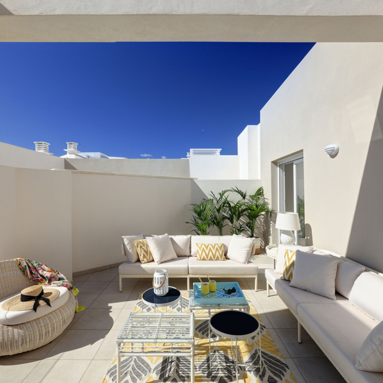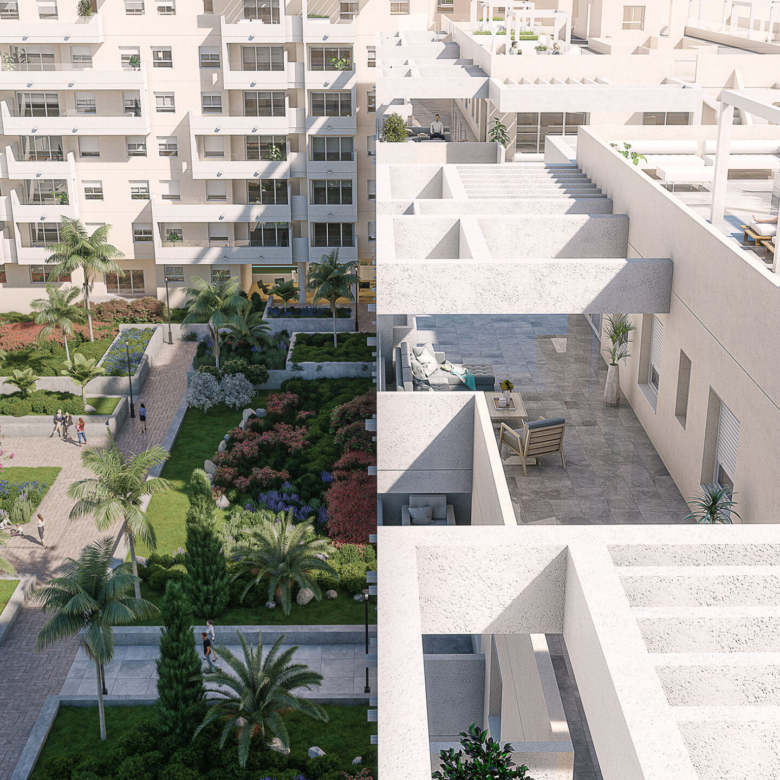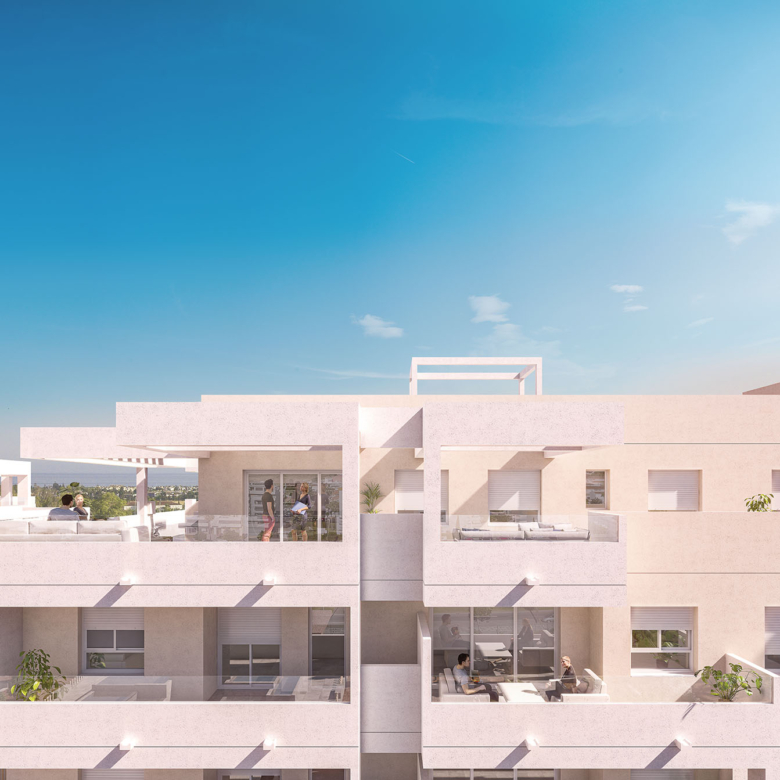 The interiors of these apartments in Marbella are designed with a focus on comfort and functionality. Laminate flooring offers a modern aesthetic and easy maintenance, while built-in wardrobes provide ample storage space. The inclusion of a video intercom adds an additional level of security and convenience. Each apartment is carefully laid out to maximize space and natural light, with options of 2, 3, and 4 bedrooms, all with 2 bathrooms. Private terraces extend the living space, allowing you to enjoy sea views and the mild climate year-round.