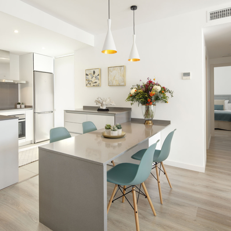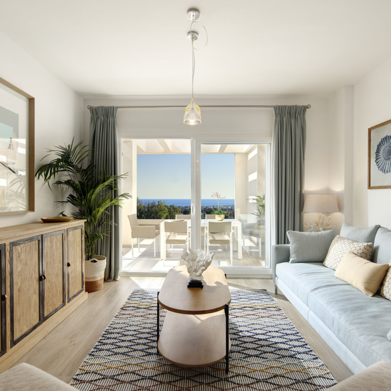 The interiors of these apartments in Marbella are designed with a focus on comfort and functionality. Laminate flooring offers a modern aesthetic and easy maintenance, while built-in wardrobes provide ample storage space. The inclusion of a video intercom adds an additional level of security and convenience. Each apartment is carefully laid out to maximize space and natural light, with options of 2, 3, and 4 bedrooms, all with 2 bathrooms. Private terraces extend the living space, allowing you to enjoy sea views and the mild climate year-round.