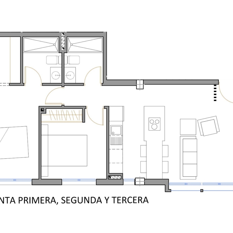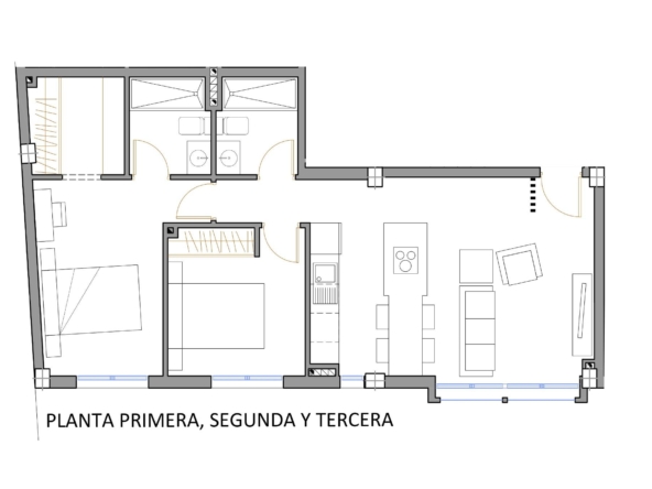 Apartments with 2 bedrooms, 2 bathrooms, an open plan kitchen with living area, terraces, fitted wardrobes, fully equipped bathrooms.