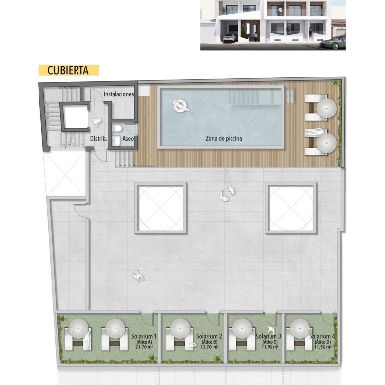 This newly built apartment building is located just 250 meters from the famous El Cura Beach in Torrevieja, offering residents easy access to one of the most popular beaches in the area. The building consists of 17 units, featuring 1 and 2-bedroom apartments, each with 1 or 2 bathrooms. Additionally, there are penthouses available with private solariums and stunning sea views, perfect for enjoying the Mediterranean lifestyle.