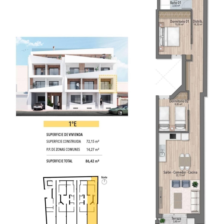 This newly built apartment building is located just 250 meters from the famous El Cura Beach in Torrevieja, offering residents easy access to one of the most popular beaches in the area. The building consists of 17 units, featuring 1 and 2-bedroom apartments, each with 1 or 2 bathrooms. Additionally, there are penthouses available with private solariums and stunning sea views, perfect for enjoying the Mediterranean lifestyle.