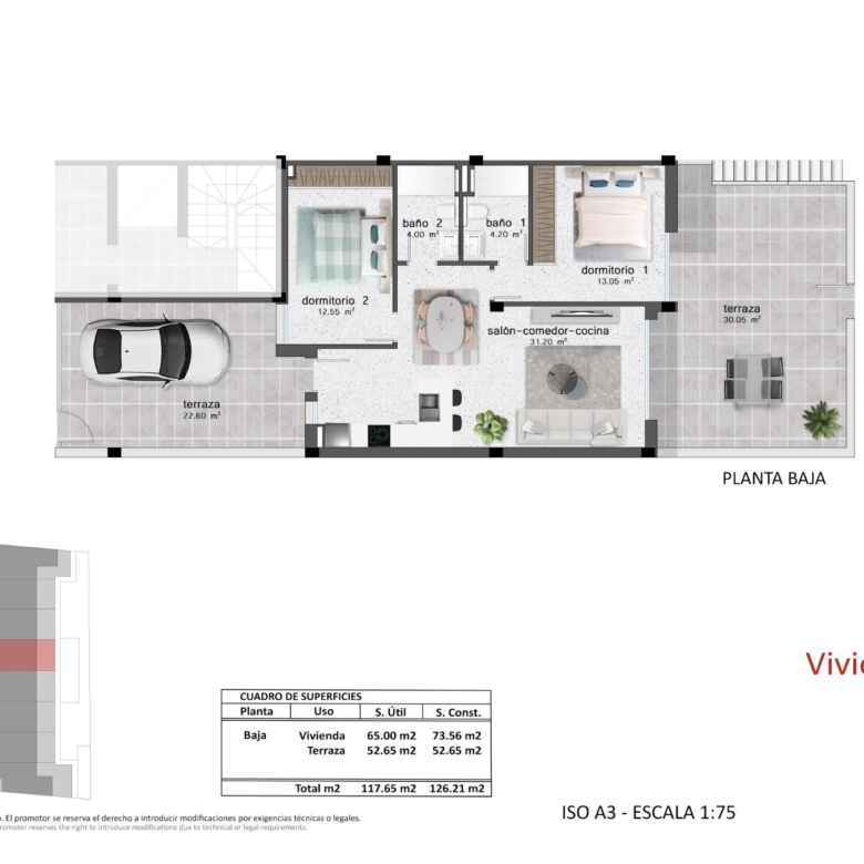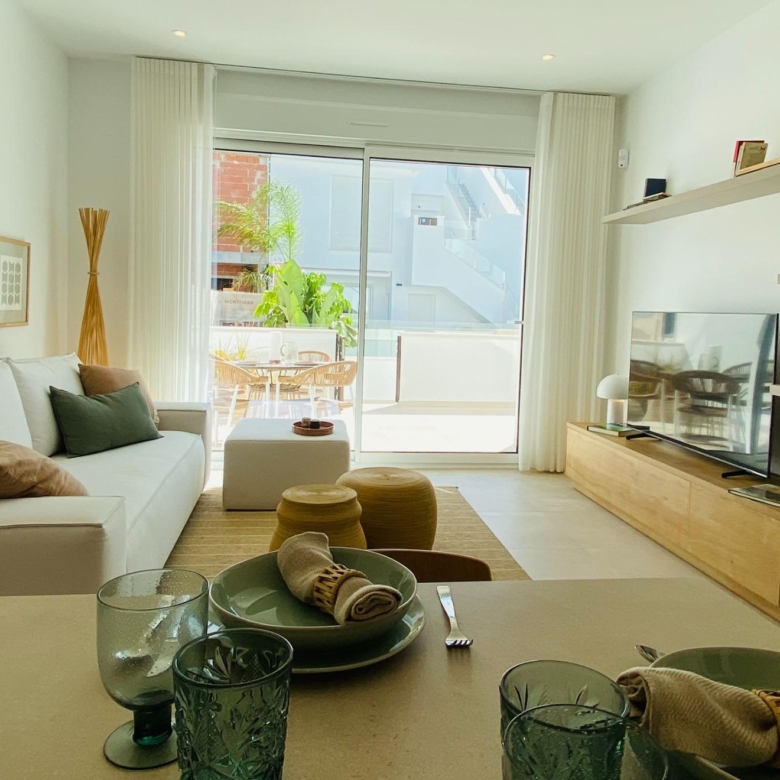 Pilar de la Horadada is a traditional Spanish town with a lively main street offering supermarkets, shops, restaurants, and bars. The beautiful beaches of Torre de la Horadada and Mil Palmeras are just 5 minutes away. The development is conveniently located 40 km from Corvera Airport (Murcia) and 55 km from Alicante Airport, making it an ideal location for both permanent living and holiday getaways.