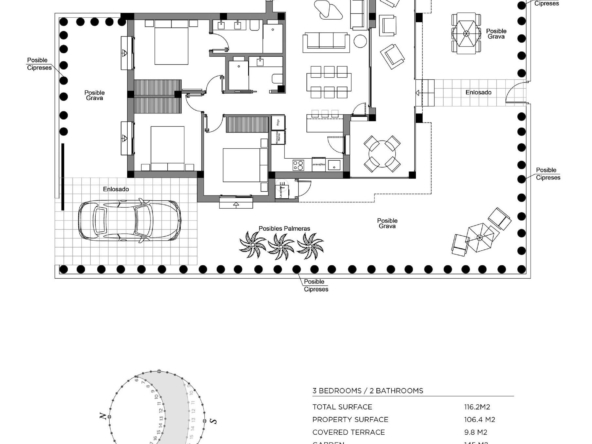 Modern townhouses build over 2 floors and has 3 bedrooms, 2 bathrooms, open plan kitchen and the lounge area, fitted wardrobes, terraces, private garden and solarium.
