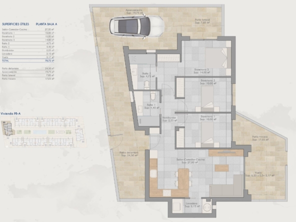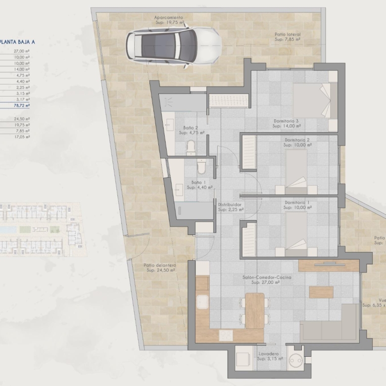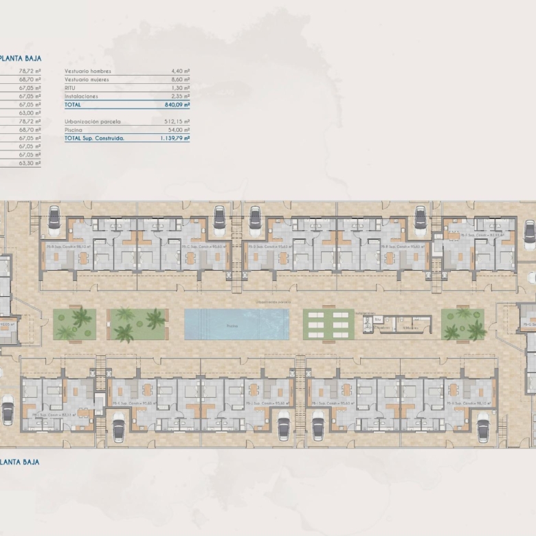 Discover a new residential complex in Torre-Pacheco, offering 24 stylish bungalows with 2 or 3 bedrooms. Choose between ground-floor homes with spacious terraces or first-floor units boasting private terraces and solariums. Each solarium includes a pergola, a barbecue area, and reinforced roofing, perfect for installing a jacuzzi. All homes come with a designated parking space and fully installed air conditioning, ensuring comfort year-round.