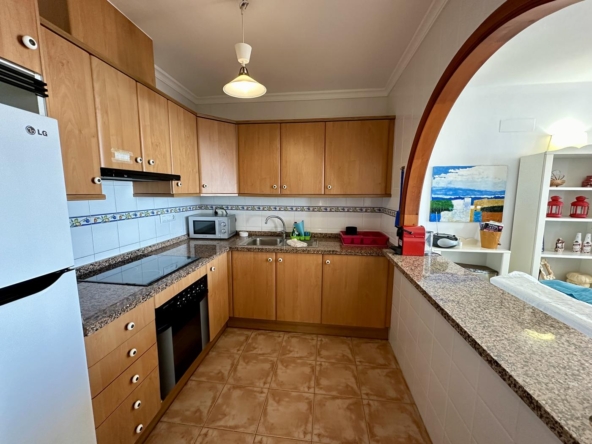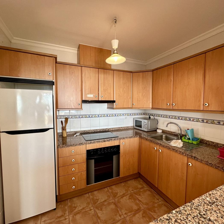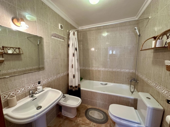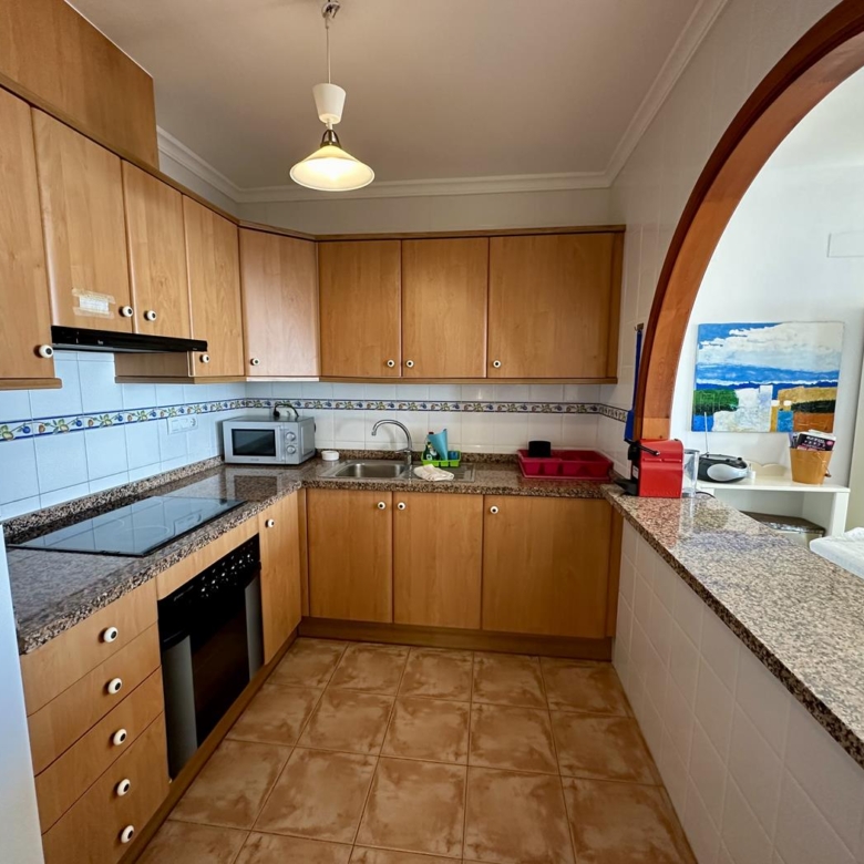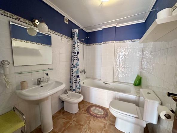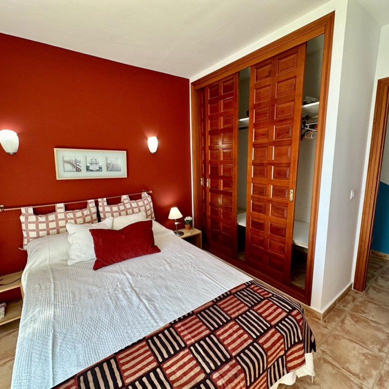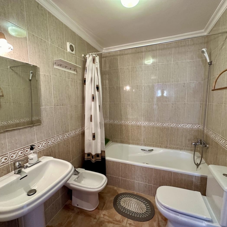 On the main floor (66 m²) we find the living / dining room with TV, bedroom with double bed and fitted wardrobes, open kitchen, a bathroom with bathtub and terrace of 20 m² with panoramic sea views, pergola and awning.
