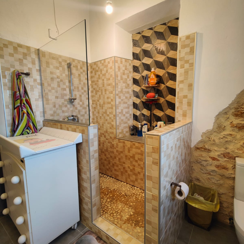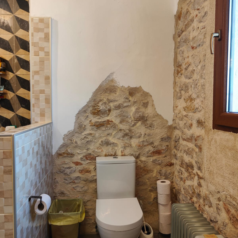 You can choose to build a new home or maintain the current stone house, which has been reinforced and renovated from 2019 to today, and has about 130 m². Upon entering through the porch of approximately 25 m², you will find a cozy interior that includes 2 double bedrooms, a bathroom with shower, a living/dining room, and an independent kitchen.