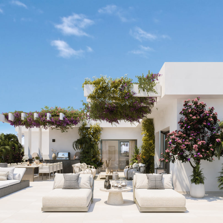 The exteriors of these properties are designed to make the most of Casares’ natural surroundings. Each home features a private garden, ideal for enjoying the Mediterranean climate. Additionally, the terraces offer extra outdoor space, perfect for relaxing or entertaining guests while enjoying the stunning sea views. The community also boasts extensive landscaped areas, providing a green and tranquil environment for all residents.