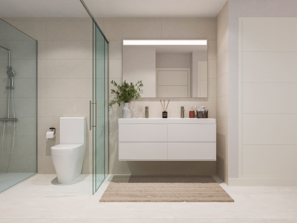 The exteriors of these homes have been designed to complement the natural surroundings of Estepona, offering spaces that allow for enjoyment of the Mediterranean climate year-round. Many of the properties feature private terraces, ideal for relaxing outdoors and enjoying the sea views. Additionally, some units include private gardens, providing extra space for outdoor leisure and entertainment. The Penthouses, on the other hand, offer the option of solariums, perfect for those seeking a private space to sunbathe or enjoy panoramic views. The proximity to the sea, just 1 km away, ensures that residents can enjoy the sea breeze and the relaxing sound of the waves, creating an atmosphere of serenity and well-being.
