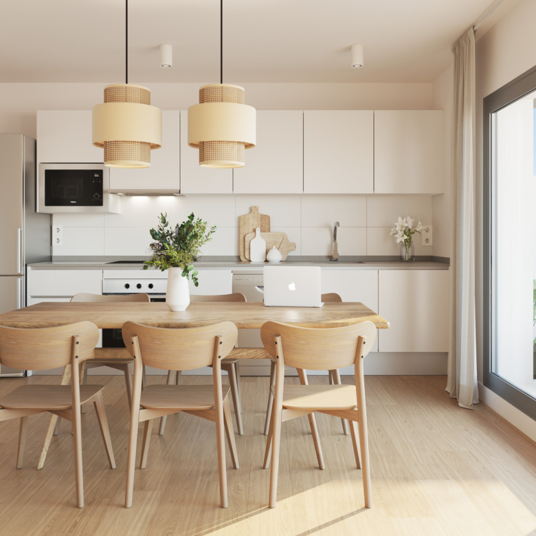 The homes are equipped with modern features that ensure maximum comfort. All properties come furnished, facilitating a hassle-free move. The parquet flooring adds a touch of elegance, while the air conditioning system guarantees a pleasant environment year-round. Built-in wardrobes offer efficient storage solutions, and the inclusion of modern appliances in the kitchen ensures an optimal culinary experience. Additionally, the video intercom provides an extra level of security and convenience.