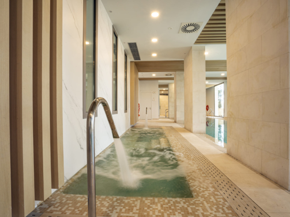 The residential complex offers a variety of common areas designed for the enjoyment and well-being of its residents. The communal gardens provide a green space for relaxation and socializing. The communal pool is ideal for swimming and enjoying the sun, while the communal jacuzzi offers a place to relax and rejuvenate. For those looking to stay active, the communal gym is equipped with everything needed for a complete workout. These facilities ensure that residents have access to a healthy and balanced lifestyle without leaving home.