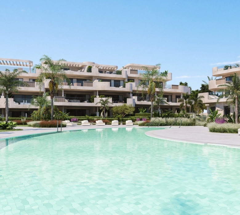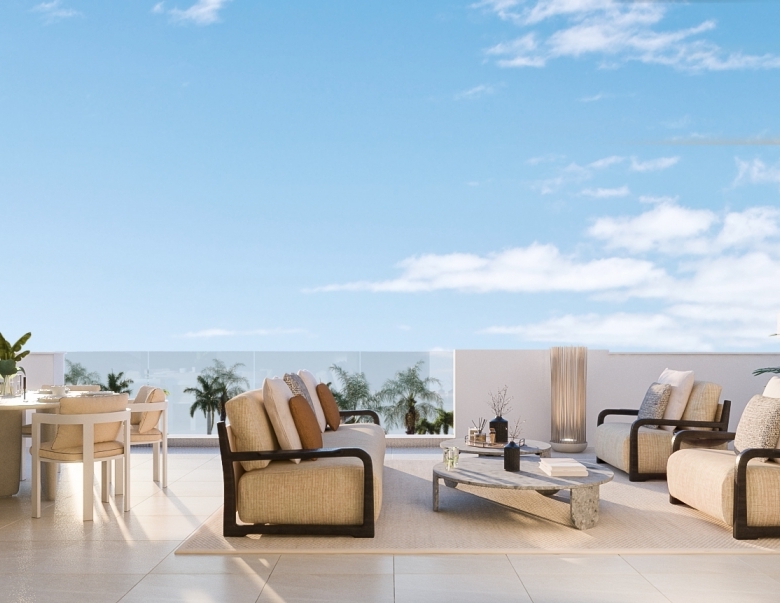 The exterior design of the homes in Estepona focuses on integration with the natural environment, offering private gardens that provide a personal green space to enjoy the Mediterranean climate. The spacious terraces are perfect for outdoor relaxation, while the solarium, available in some typologies, offers additional space to enjoy the sun and views. The proximity to the sea, just 2 kilometers away, allows for coastal walks and water activities, making this residential a perfect place for nature and outdoor enthusiasts.