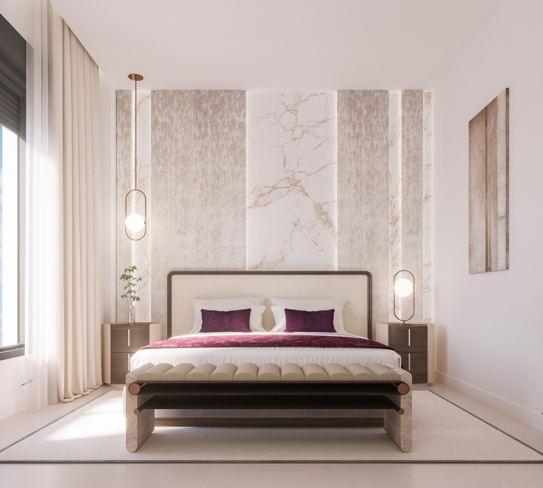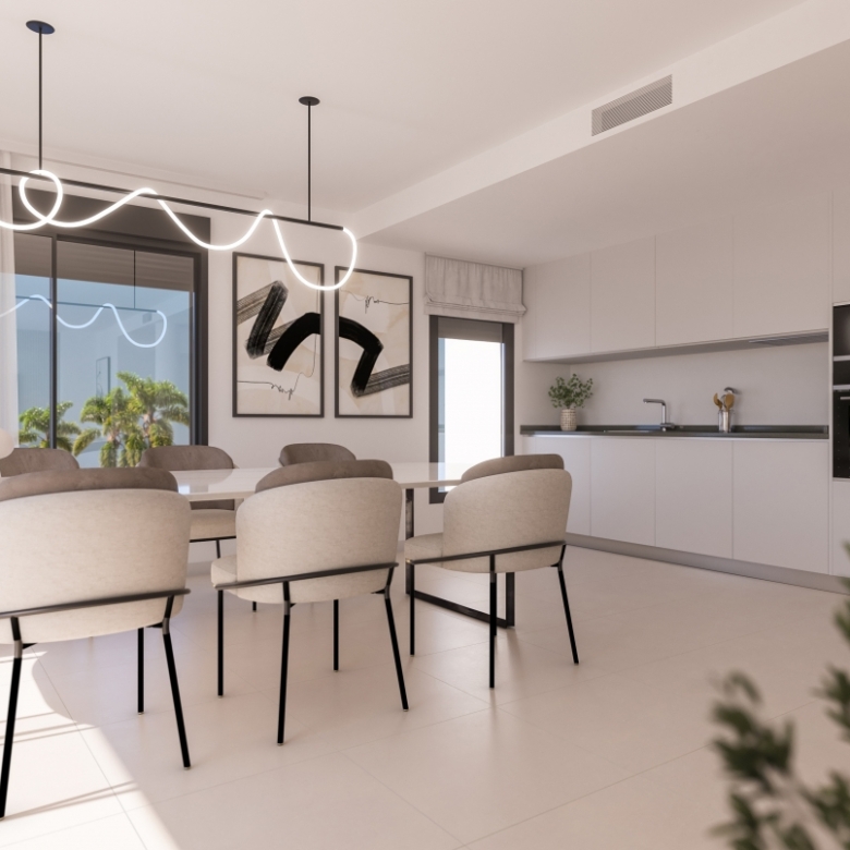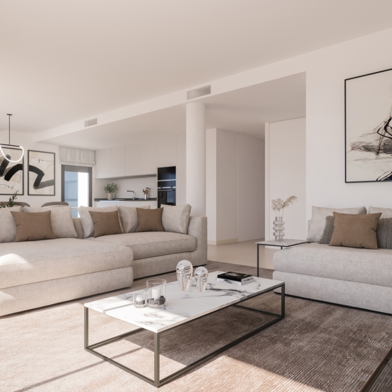 The exteriors of this residential in Estepona are designed to offer an unparalleled outdoor lifestyle. Each property features a private terrace, ideal for enjoying the sea views and Mediterranean climate. Additionally, some homes include a solarium, perfect for relaxing in the sun. Private gardens, available in certain typologies, provide an additional green space for personal enjoyment. Pergolas installed on the terraces add a touch of elegance and functionality, allowing enjoyment of these outdoor spaces year-round. The proximity to the sea, just 1 km, makes outdoor activities an integral part of daily life in this residential.