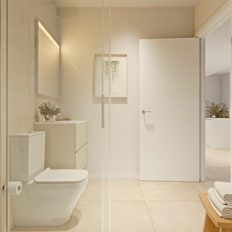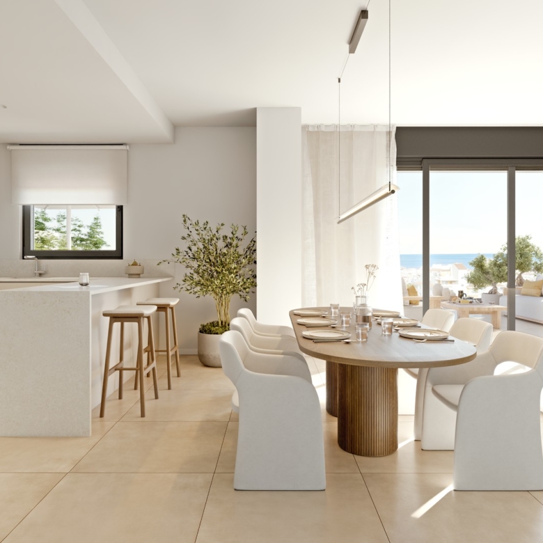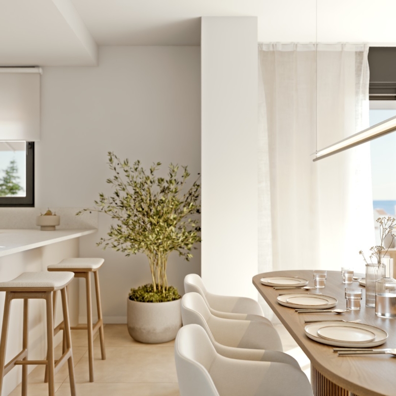 The exteriors of these properties are designed to maximize enjoyment of the Mediterranean climate. Each home features a private terrace, perfect for outdoor relaxation. The penthouses also have a solarium, offering additional space to enjoy the sun and views. For those who value privacy, some properties include a private pool, creating a personal oasis at home. Access to an electric car charging point reflects the commitment to sustainability and modern convenience.