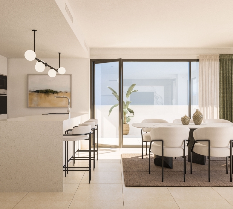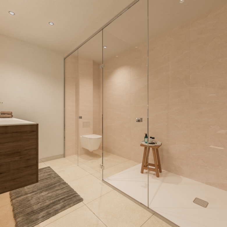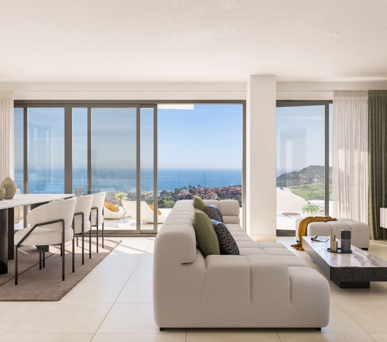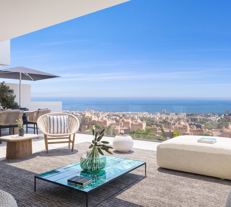 The exteriors of this residential in Manilva are designed to maximize enjoyment of the natural surroundings and sea views. Each property features private terraces, perfect for enjoying the Mediterranean climate and panoramic views. Additionally, some homes offer private gardens, providing extra space for outdoor leisure. The presence of a solarium in certain typologies allows residents to make the most of the sun year-round. The community also offers a garage and communal parking, ensuring convenience and security for all residents.