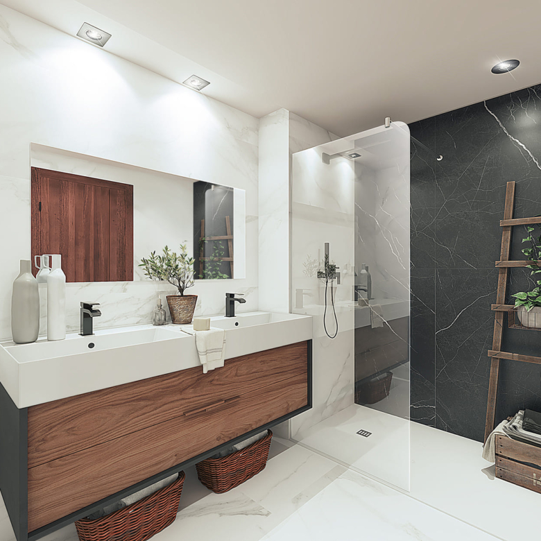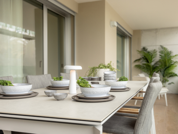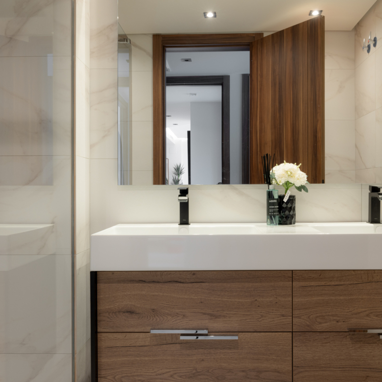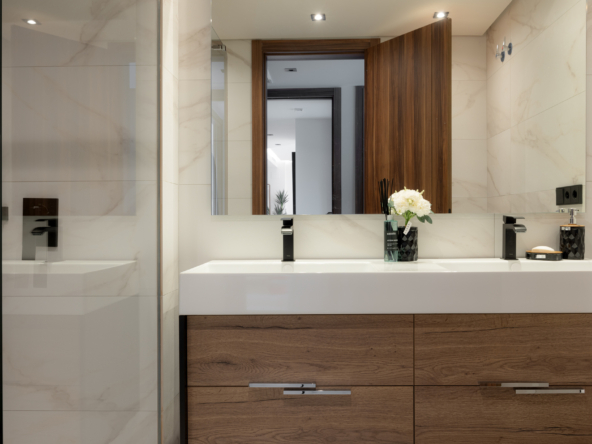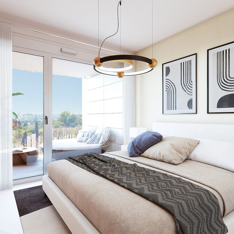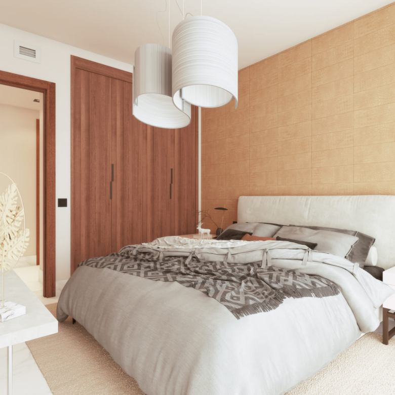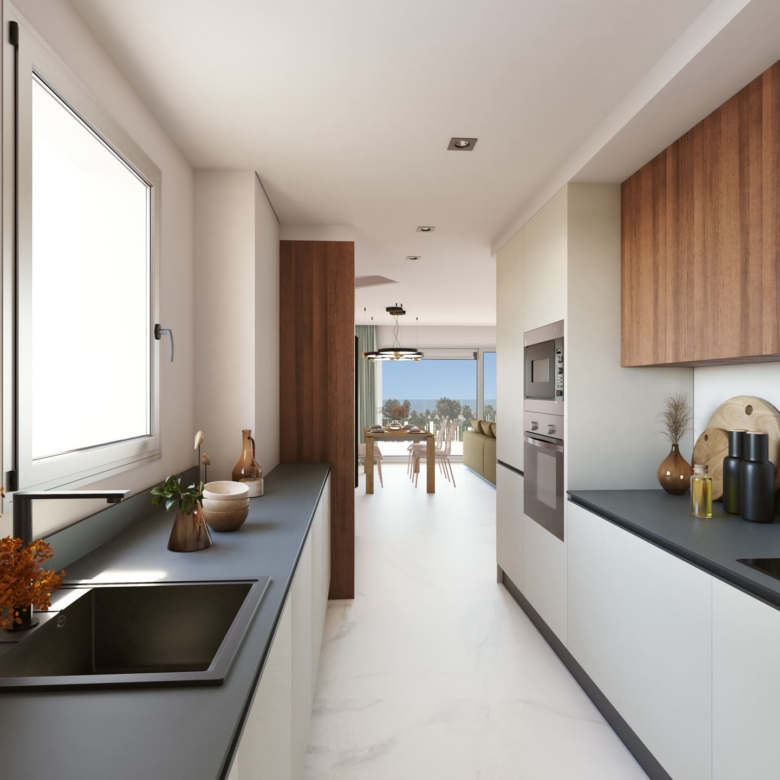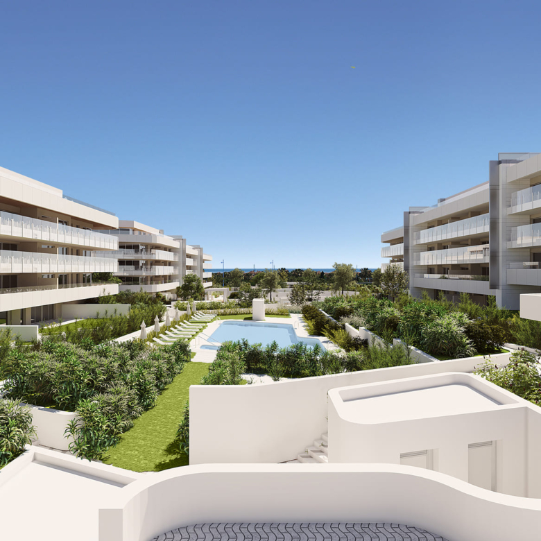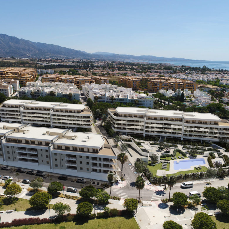 The residences in this Marbella development are equipped with high-quality features to ensure maximum comfort. Porcelain tile floors add a touch of elegance and durability. Electric shutters and air conditioning ensure a pleasant environment at any time of the year. Kitchens are fully equipped with modern appliances, making daily life easier. Built-in wardrobes offer ample storage space, maintaining order and functionality in every room. The properties are available in 2, 3, and 4-bedroom configurations, with 2 or 3 bathrooms, catering to the needs of different family types.