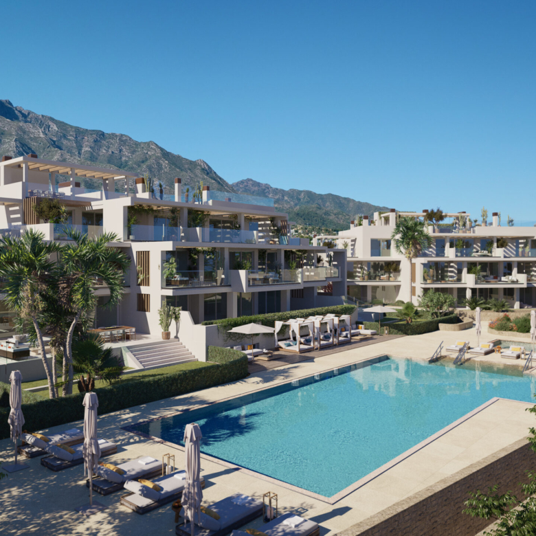 The exteriors of these properties in Marbella are designed to maximize enjoyment of the Mediterranean climate. Each unit features a private terrace, perfect for outdoor relaxation. Additionally, some properties have a solarium, ideal for sunbathing in a private setting. Private gardens offer a personal green space, while the private pool is an additional luxury that allows for a refreshing swim in the comfort of home. The presence of a pergola adds a touch of elegance and provides shade on sunny days, creating a versatile and inviting outdoor space.
