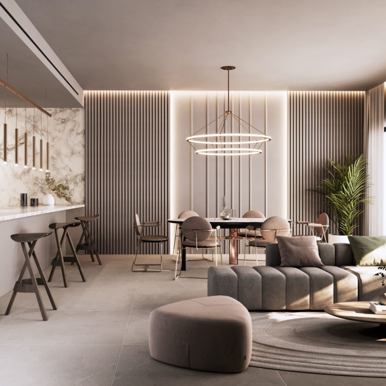 The interiors of the properties are designed to offer maximum comfort and functionality. All homes are equipped with air conditioning, ensuring a pleasant environment year-round. Floating floors add a modern and elegant touch to each space. Additionally, built-in wardrobes provide efficient storage, maintaining order and aesthetics in every room. The layout of the properties includes options with 2, 3, and 4 bedrooms, with 2 or 3 bathrooms, adapting to different lifestyles and family needs.