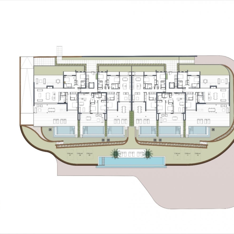 All ground floor apartments and penthouses have private swimming pools.