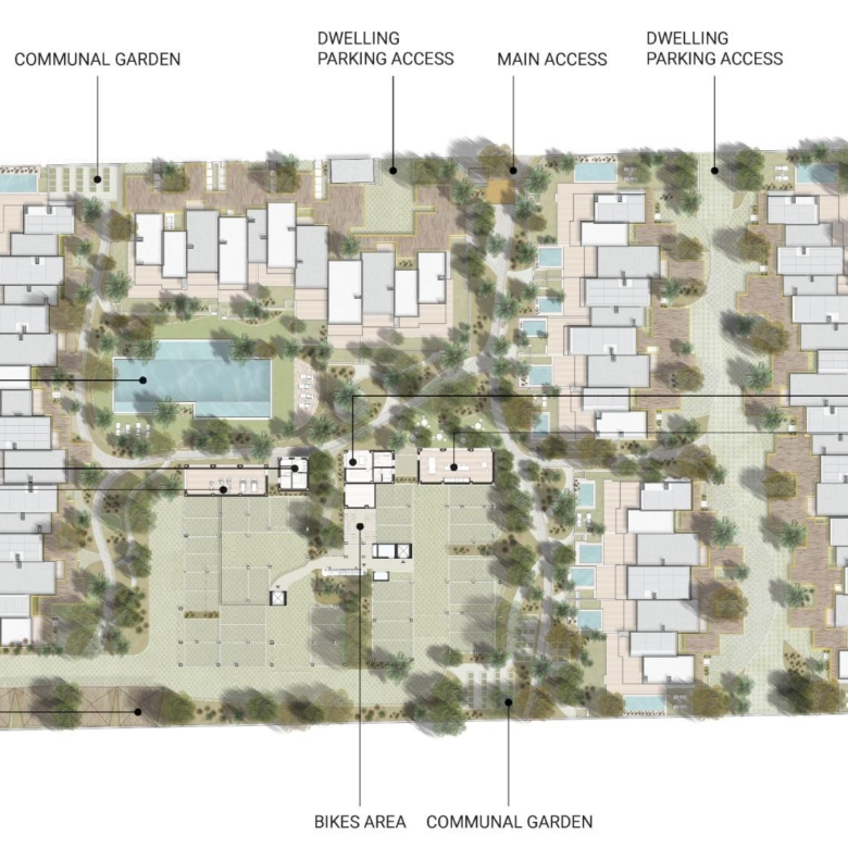 This residential concept provides an environment where communal spaces are accessible to all residents, while each home has its own private spaces, both indoors and outdoors, for daily enjoyment.