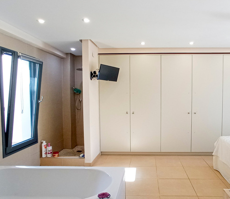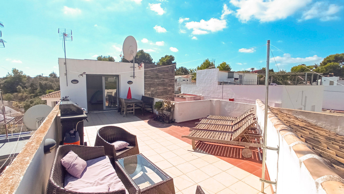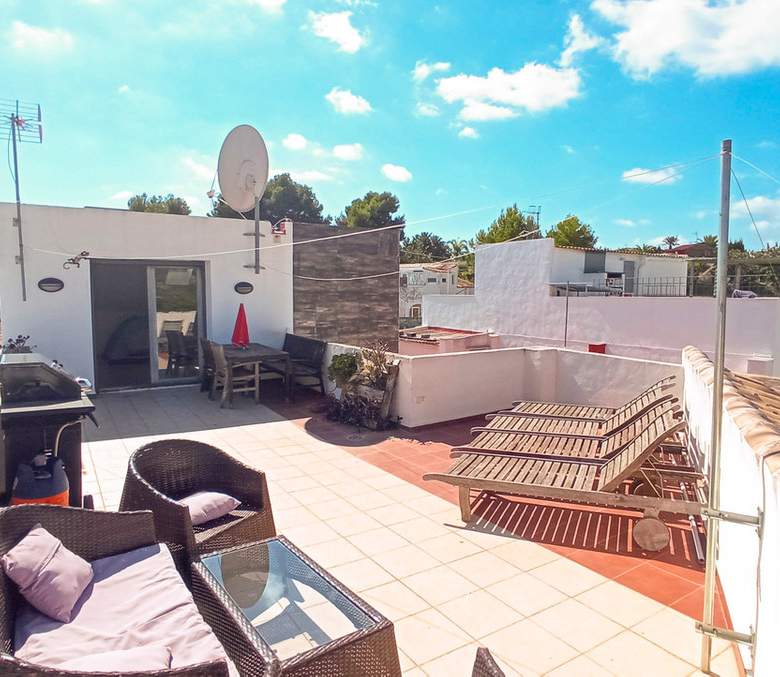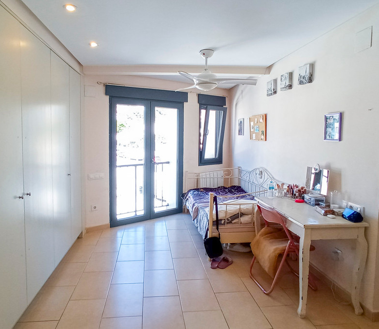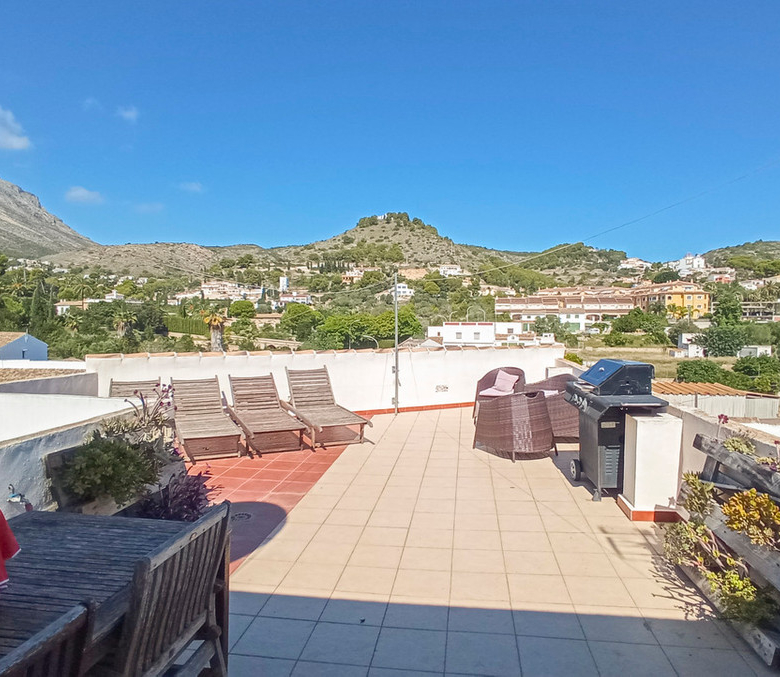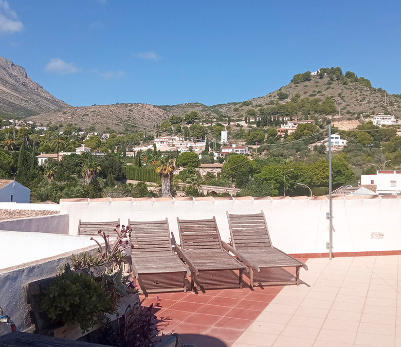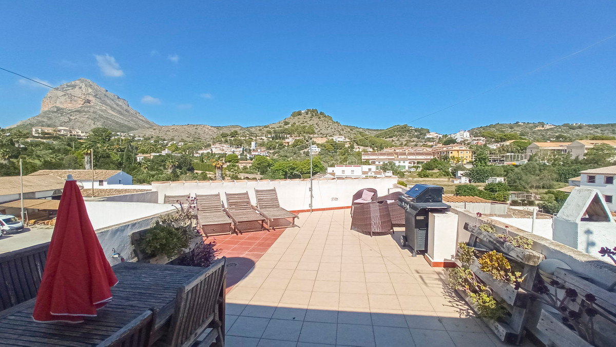 We are pleased to offer this unusual property which was built in 1980, completely renovated in 2015 and which really needs to be seen to appreciate what it can offer to those with vision. The 366m² townhouse occupies the full 4 stories of the building and offers a choice of uses. It could be one large family home or two families could have a floor each – with either option having the possibility of running a business in a dedicated space on the ground floor, or it could be bought as a investment opportunity with the aim of receiving a rental income return of an estimated 6% per annum.The ground floor comprises 2 office spaces and a huge garage which could possibly accommodate 4 cars or a combination of cars and workspace. This area can easily be separated from the rest of the building if needed. From the front door, stairs take us to the first floor which comprises a large living space with a small balcony, a kitchen, an internal patio, two bedrooms and a family shower room. The master bedroom being a large open plan area with bath, shower, sinks and toilet. Both bedrooms have built in wardrobes and central heating. Again, this section of the property can be made separate from the other parts. The main staircase continues to the second floor which again offers a large living/dining area, again with small balcony, a kitchen, two bedrooms and a family shower room. The master is the same open plan design with en-suite bath and shower areas. Again, both bedrooms have built in wardrobes and central heating. From the living area, stairs rise to the third floor where there is a large space that could be used as further living accommodation or another bedroom with a separate shower room. There is also access to the very large roof terrace that offers views to the Montgo and distant sea views.This is a unique property which is not easily categorised in the traditional manner as being a townhouse or duplex apartment. It is a very large property where the living accommodation could suit one large family who want to live together or could be two independent areas where two generations could live separately in the same house. With a small amount of work each floor could offer independent rental income sources. Please contact us to arrange a viewing to see what this property can offer you.