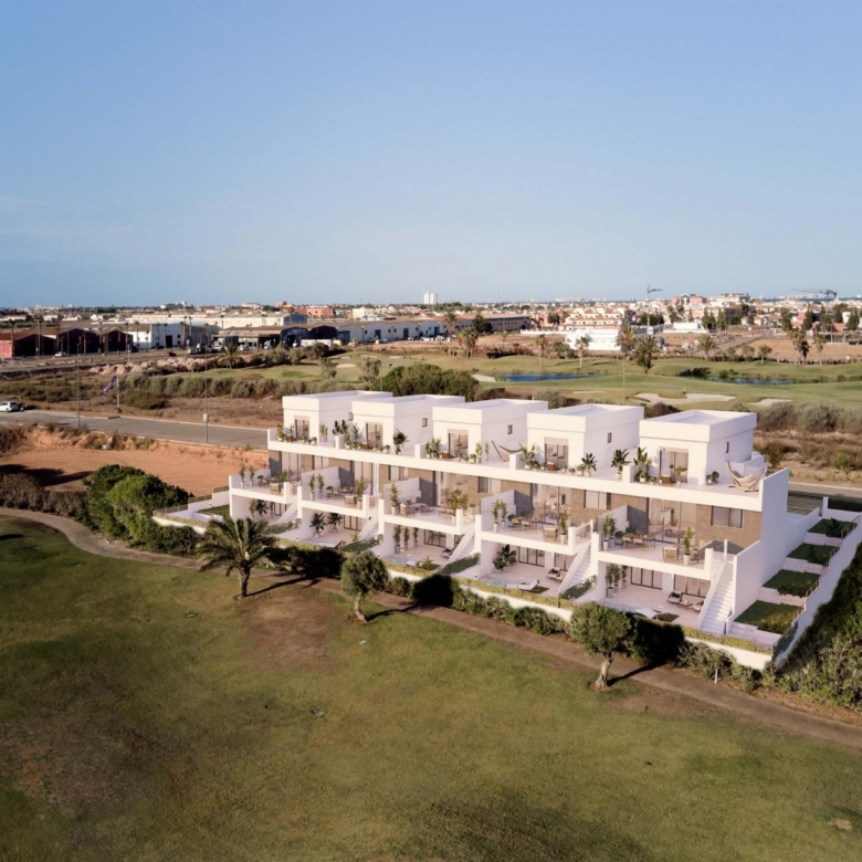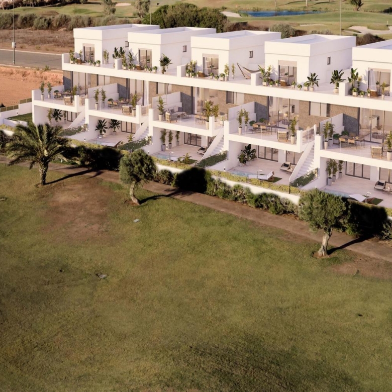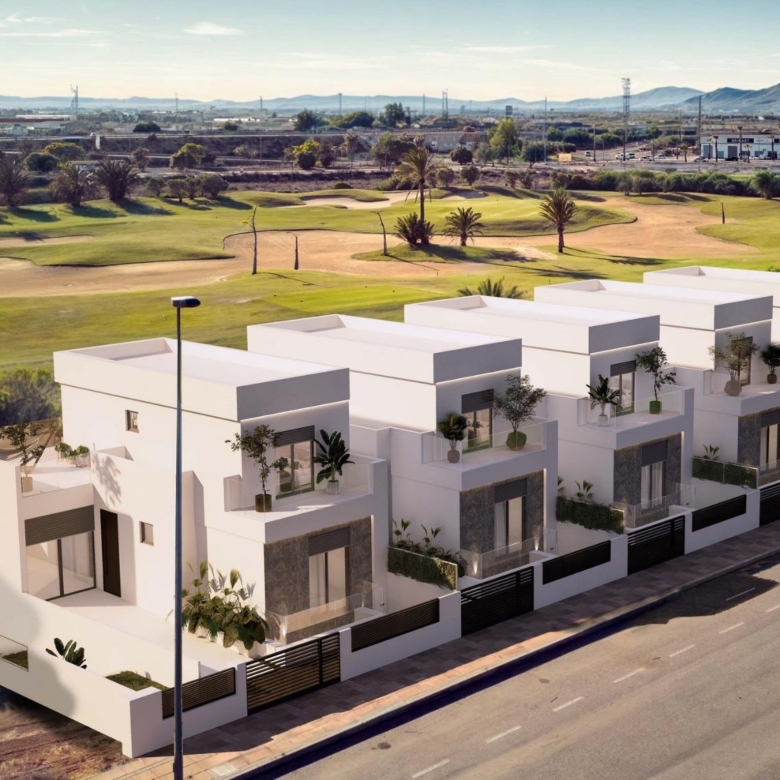 Discover your dream home in the stunning semi-detached villas located in Los Alcázares, where modern living meets breathtaking golf views. These meticulously designed 3-bedroom, 4-bathroom homes are perfect for families seeking luxury, comfort, and a touch of Mediterranean charm.