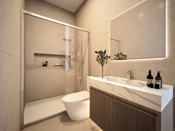 Four contemporary bathrooms, featuring high-quality fixtures and finishes.
