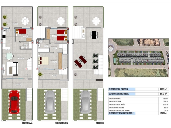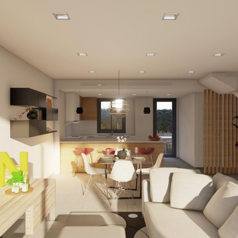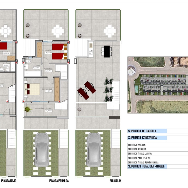 Each home comes with a landscaped garden, LED lighting, electric shutters, solar panel pre-installation, fitted wardrobes, a security door, a fully equipped kitchen with Silestone countertops, and much more.