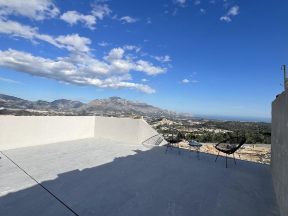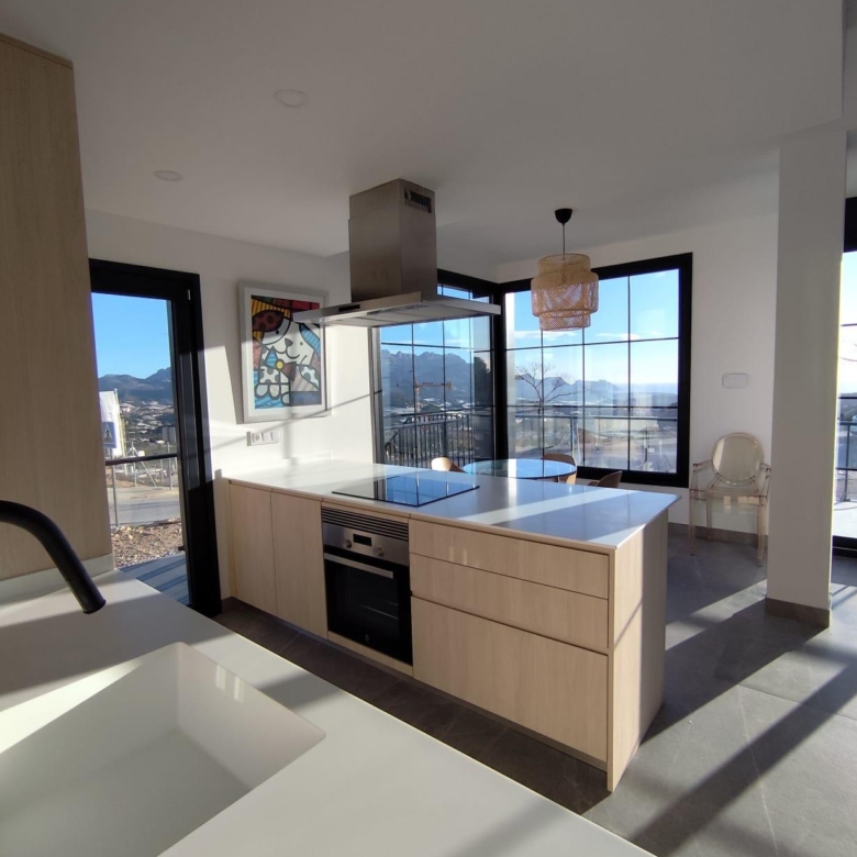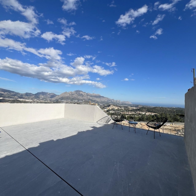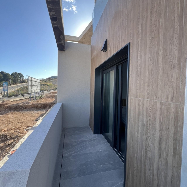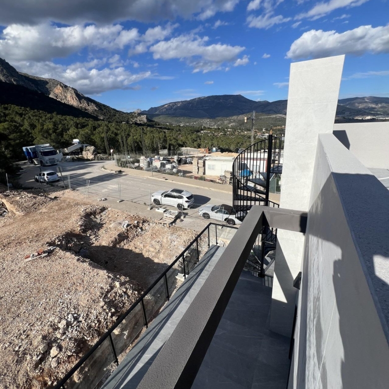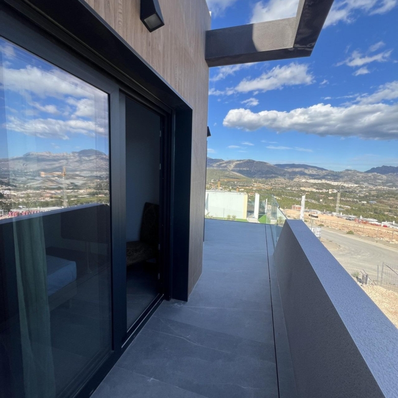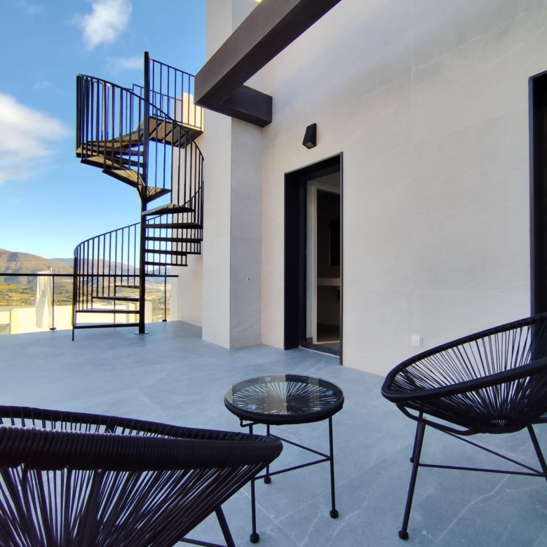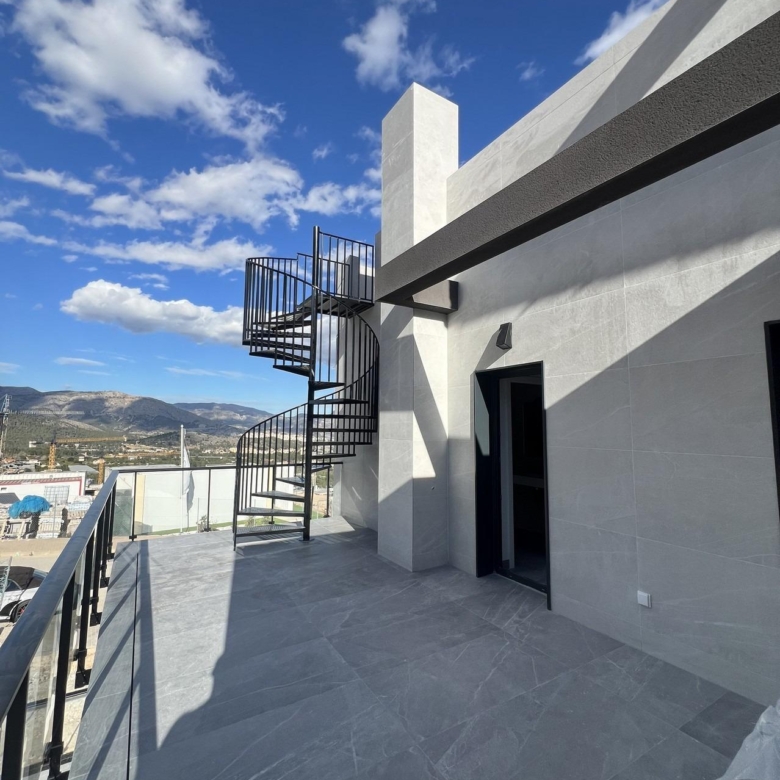 New Build modern townhouses and semi-detached villas with several terraces and solarium, totally fenced, with parking area for vehicles and private swimming pool in Polop.