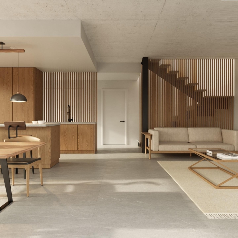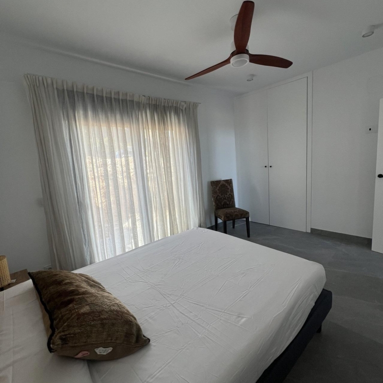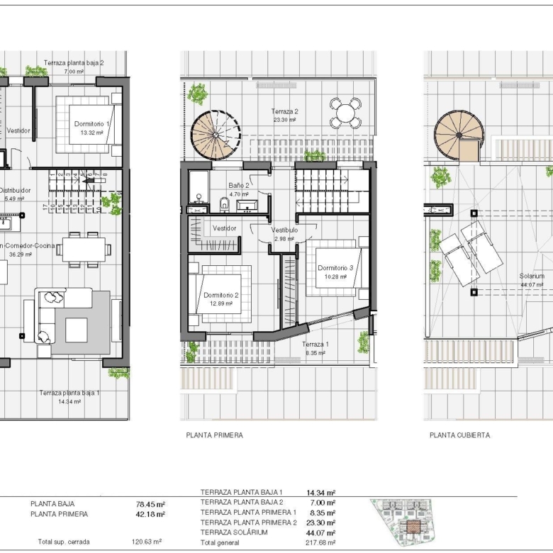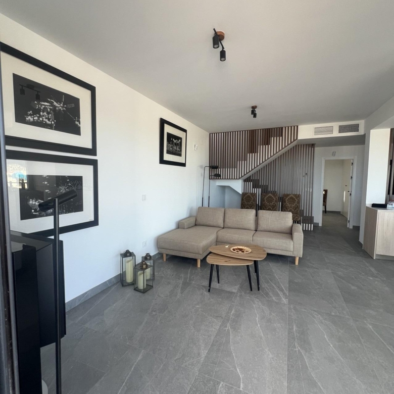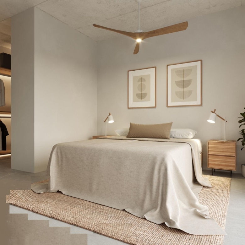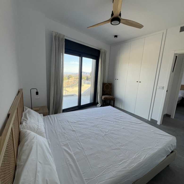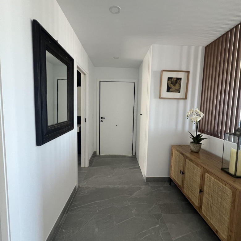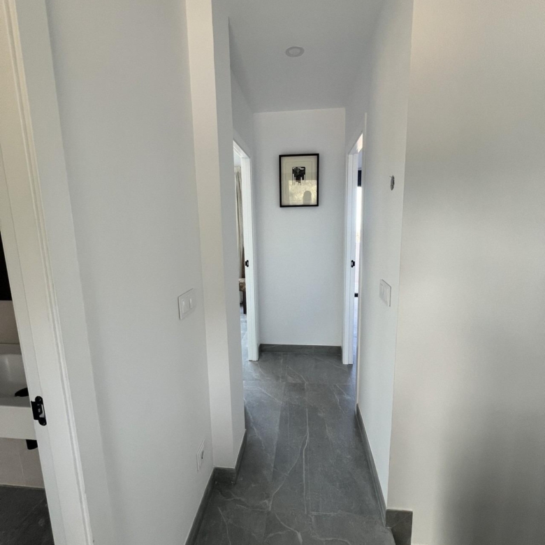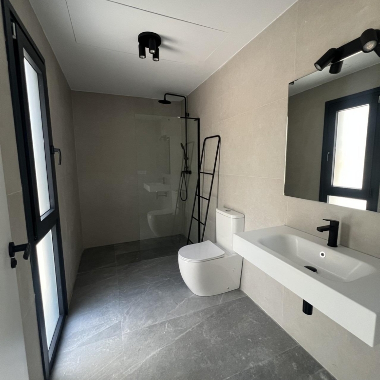 Modern properties with 3 spacious bedrooms with built-in wardrobes (the main one on the ground floor, with bathroom and dressing room en suite), 2 spacious bathrooms, large living-dining room with open kitchen, spacious terraces.