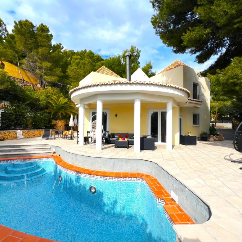 This villa is located in a very quiet area only a few minutes drive from Altea la Vieja and a few more from Altea. Close to basic necessities and the Don Cayo golf club. With stunning open views to the bay of Altea on its more than 1.000 meters of plot, it offers large gardens, barbecue area, private pool, fantastic terraces and 16 solar panels installations that supply the entire property.