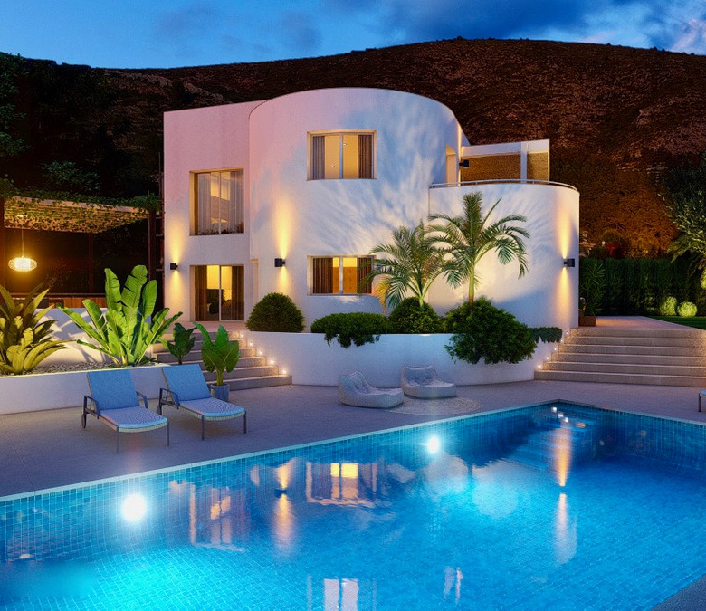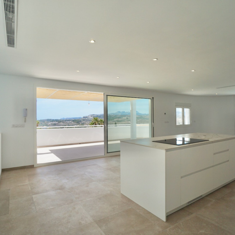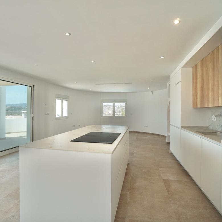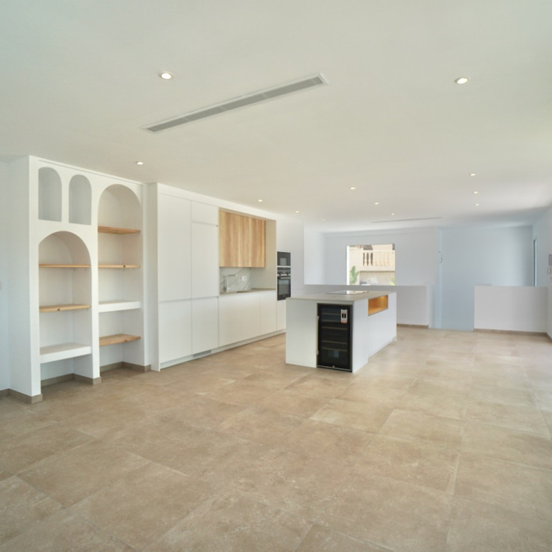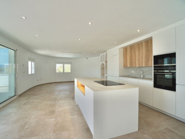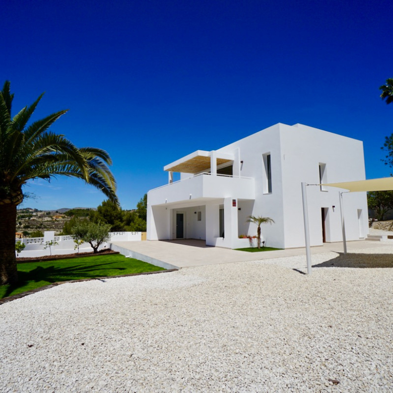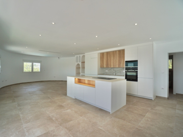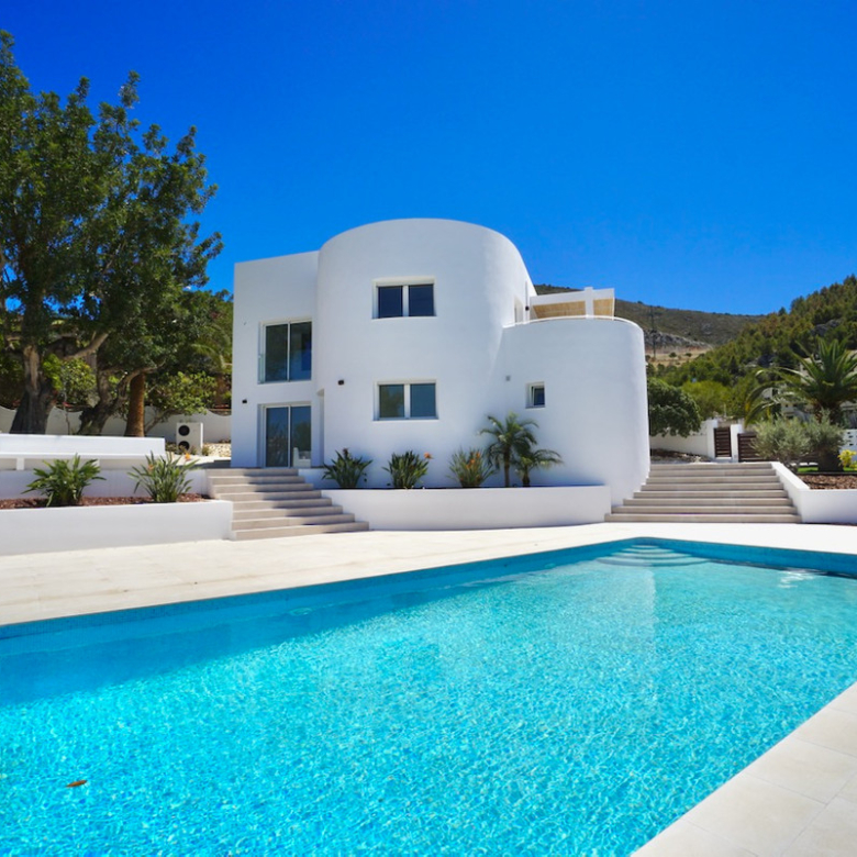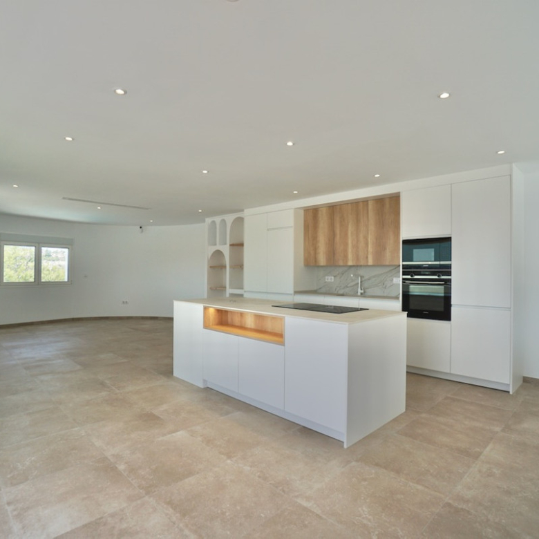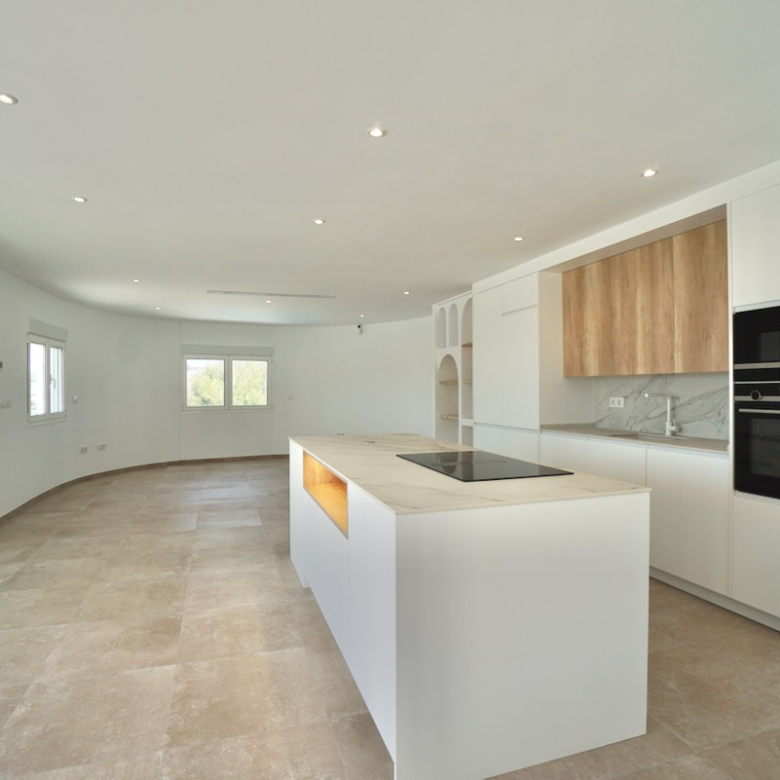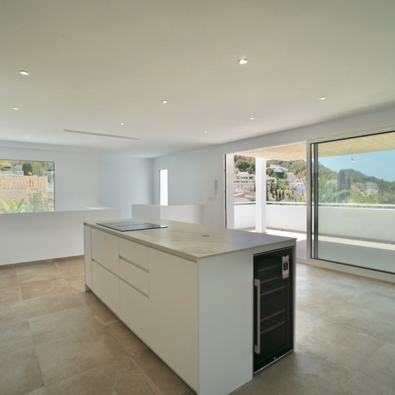 Magnificent villa, completely renovated, modern with Ibiza design elements and beautiful panoramic with even a little sea view. The orientation is south-west, on an almost level plot and in a quiet location.