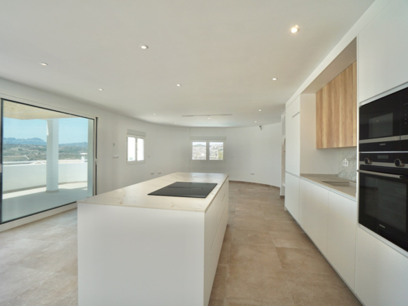 The kitchen is fully equipped with modern, energy-saving kitchen appliances (fridge, oven, microwave, cooking island with induction plates and integrated extractor hood, dishwasher).