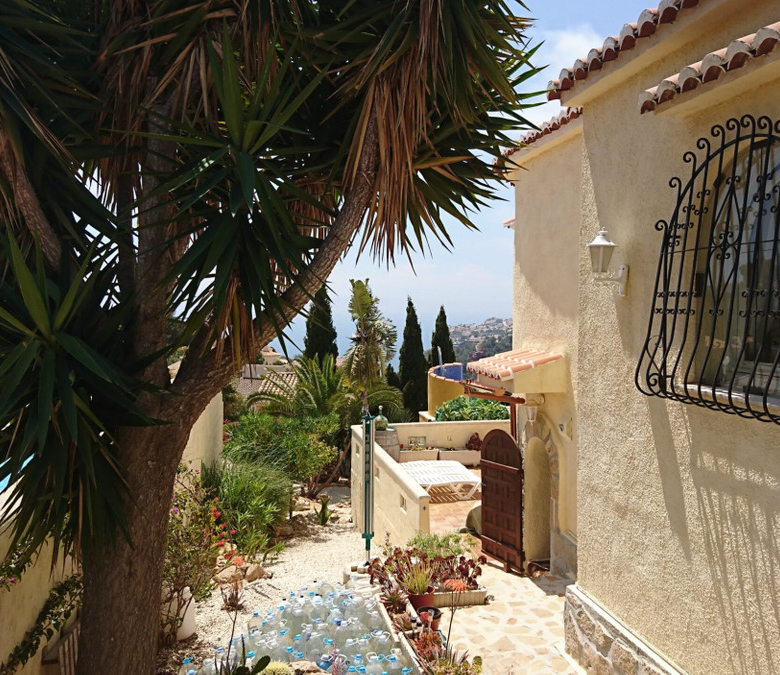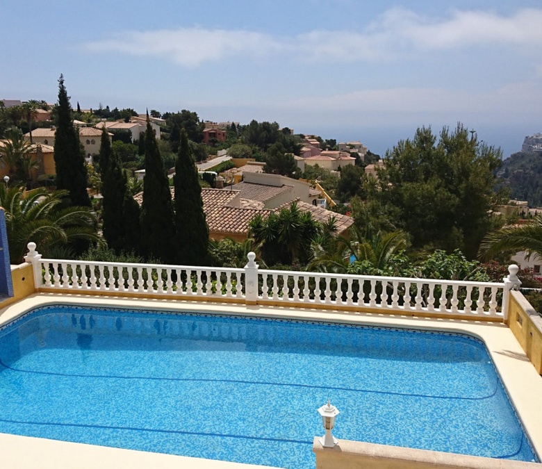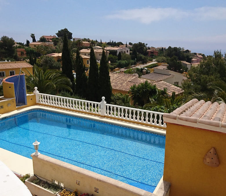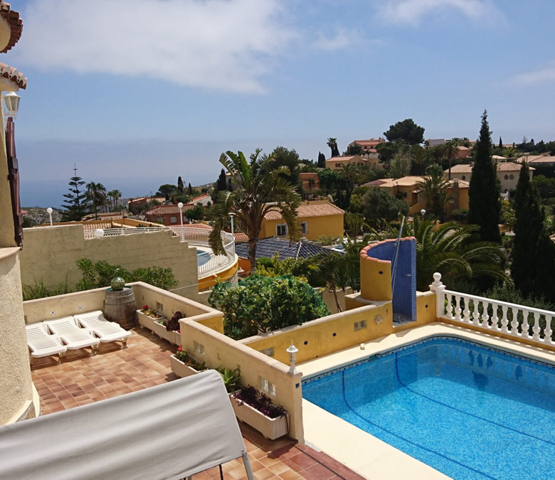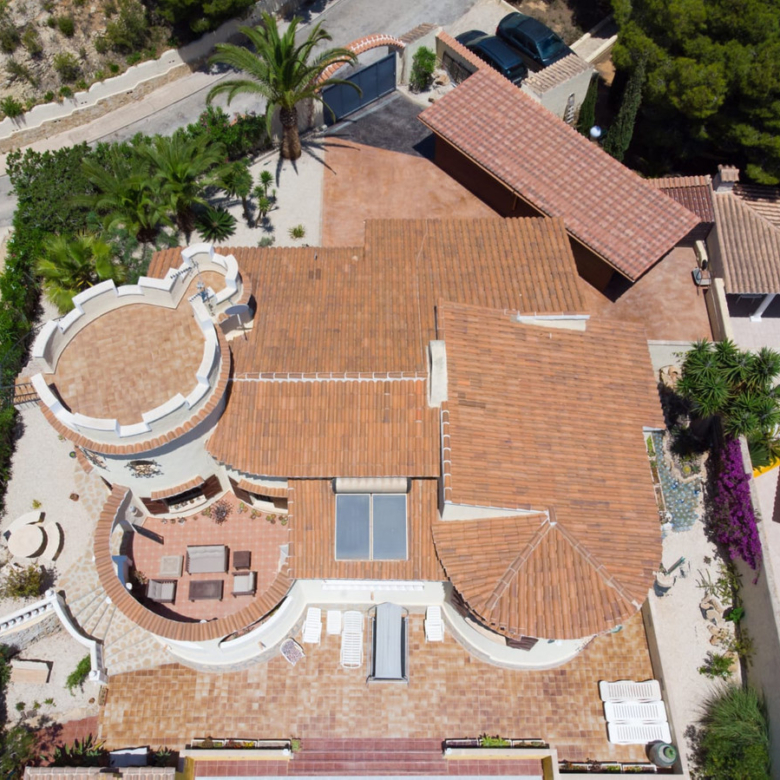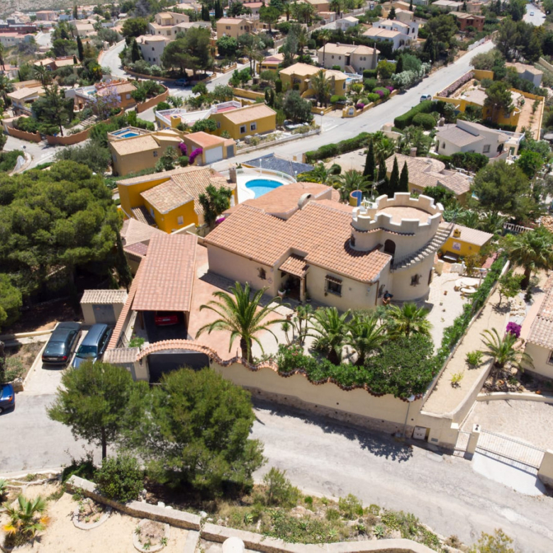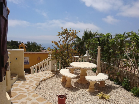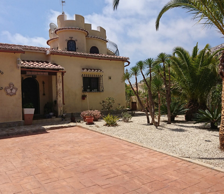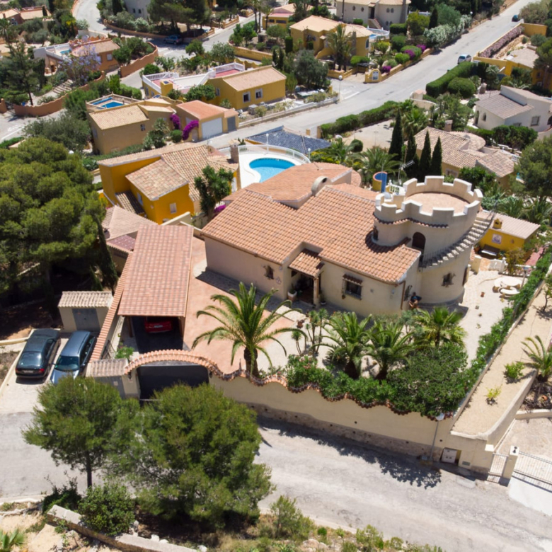 This traditional villa is located in the Cumbre del Sol residential resort. There are sea views from the terrace as well as from all rooms. The villa is spread over three floors. The ground floor comprises a lounge with a fireplace, a dining room, a kitchen, three double bedrooms, one with an en suite bathroom, a separate bathroom, a naya and a terrace. In the tower there is a fourth bedroom with access to the roof terrace where you can enjoy breathtaking 180º views. The basement comprises a fifth bedroom with a bathroom and a storage room. Outside is a swimming pool with a large terrace, an outdoor shower and an outdoor kitchen with a barbecue. There is also large driveway and a carport with space for two cars. The villa is surrounded by a Mediterranean garden with automatic irrigation. Cumbre del Sol is located in Benitachell municipality between Jávea and Moraira. Several beautiful beaches are less than a km away, there is also a large international school, a supermarket, a pharmacy and several bars and restaurants.