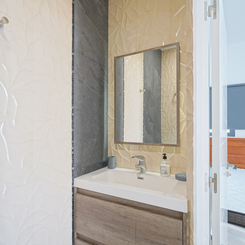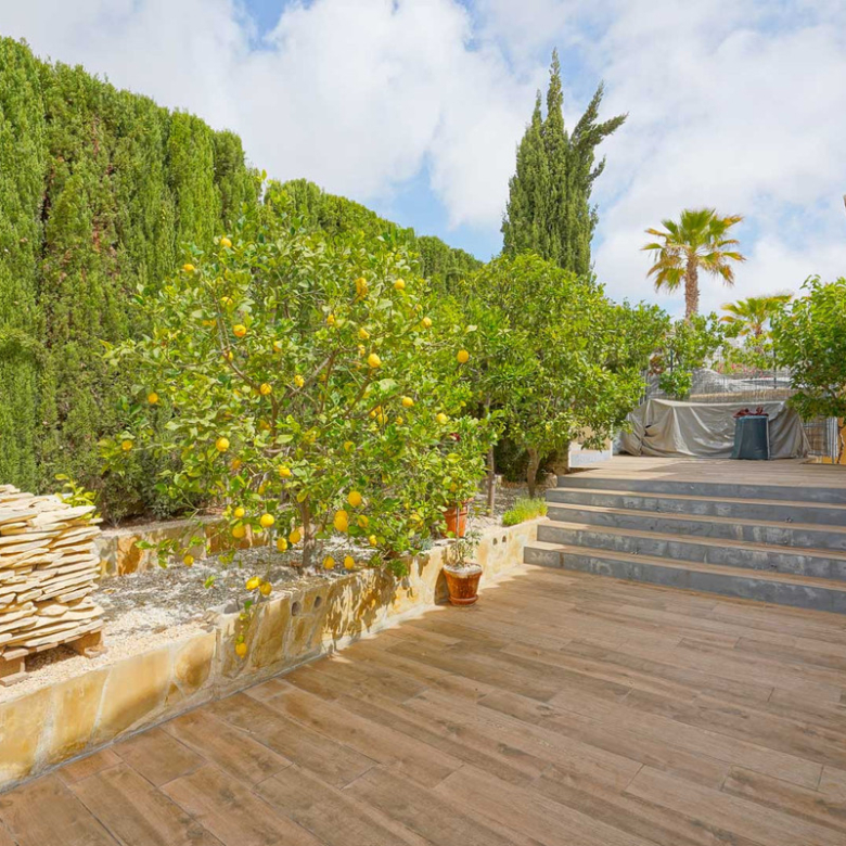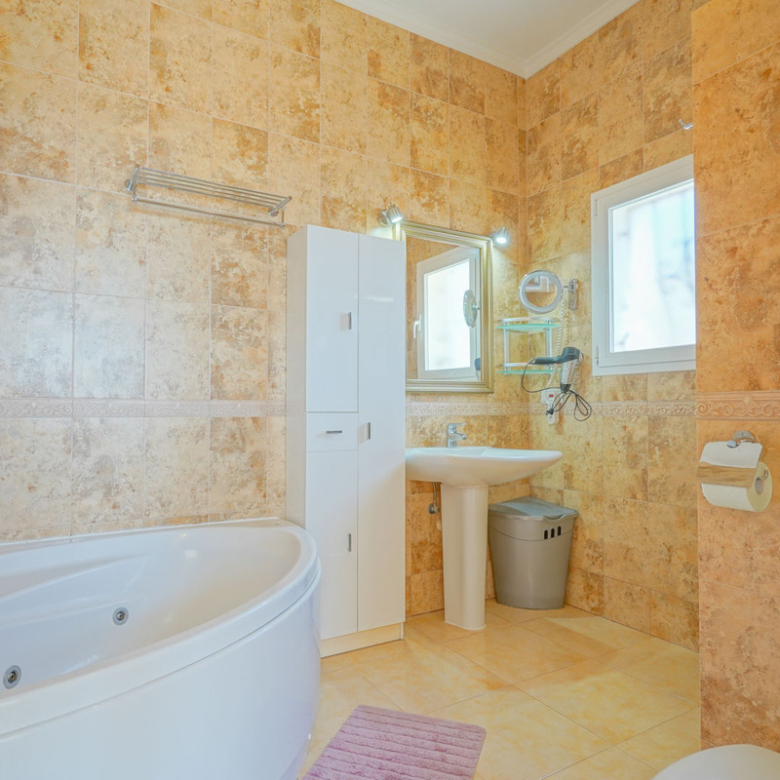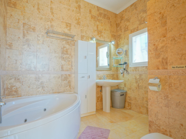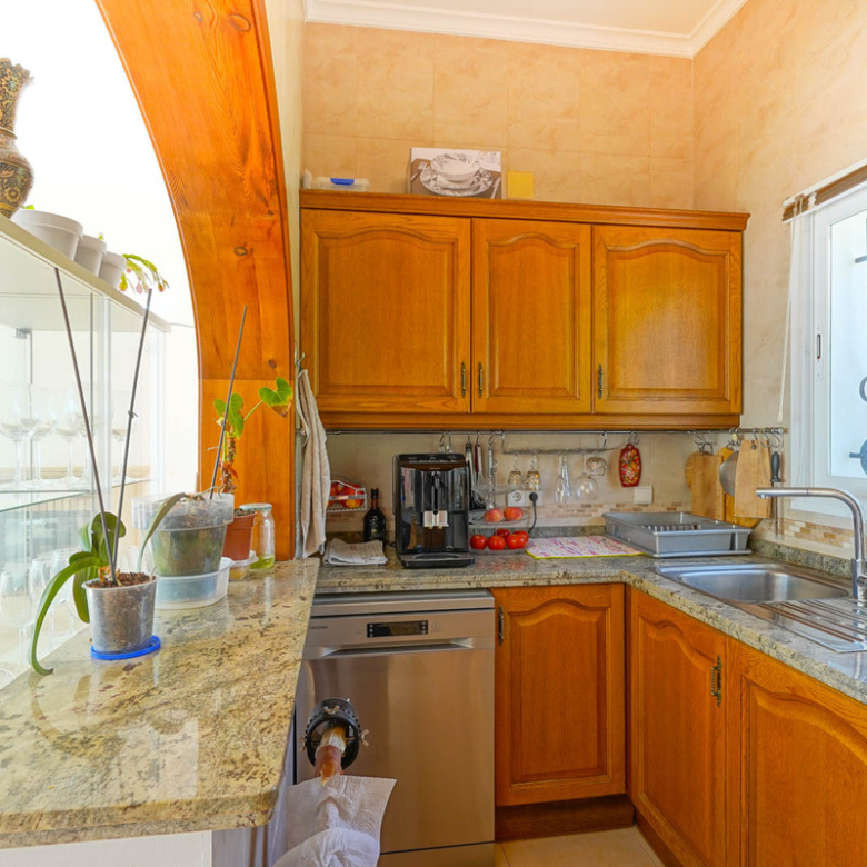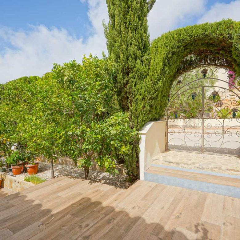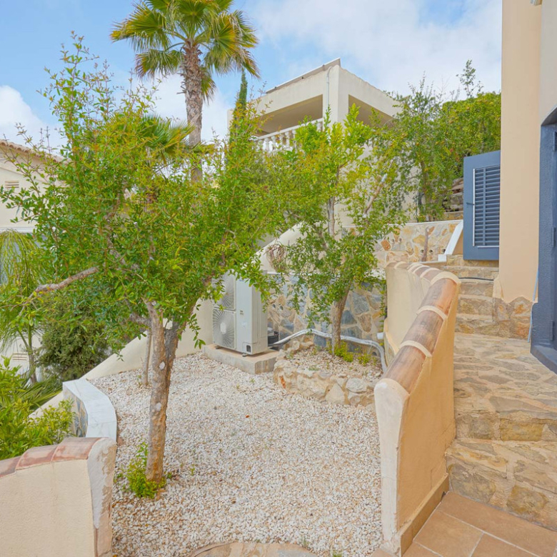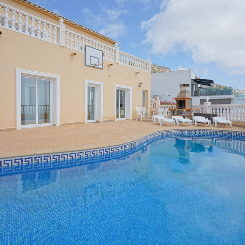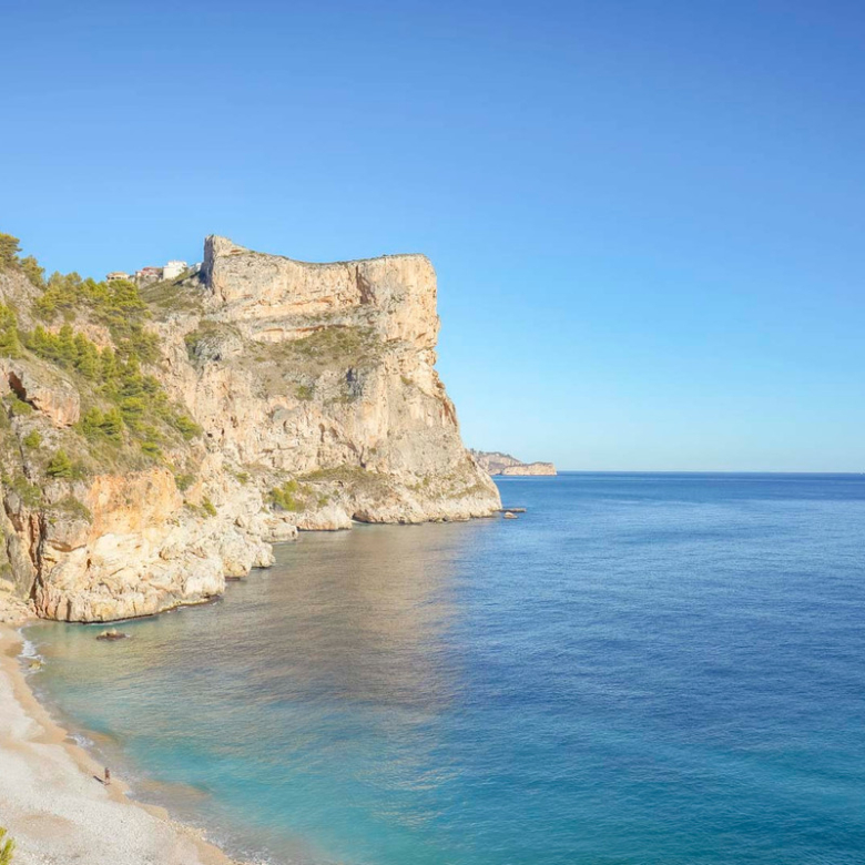 Located in Cumbre del Sol, this villa offers breathtaking views over the cliffs and the azure Mediterranean Sea. The villa is spread over two floors. On the first floor is a living-dining room with a stove, a half-open kitchen and a double bedroom with an ensuite bathroom. Through sliding windows there is direct access to a large terrace from both the bedroom and the living room. The ground floor consists of two double bedrooms, two bathrooms and an extra room that could possibly be used as a single room. Outside, there is a large poolside terrace and a barbecue. There is also a terrace surrounded by fruit trees on the north side. The villa has air conditioning and underfloor heating. There is also parking space for two cars. There is also a project approved to extend the villa by 100 m2 if required. The villa is just 4 minutes’ drive from the idyllic pebble beach of Cala Moraig and 10 minutes from the tourist coastal village of Moraira and has a rental licence. Jávea can be reached in 20 minutes. Both the international school and several large supermarkets can be reached in just 5 minutes.