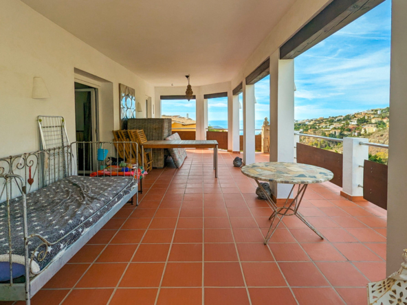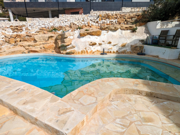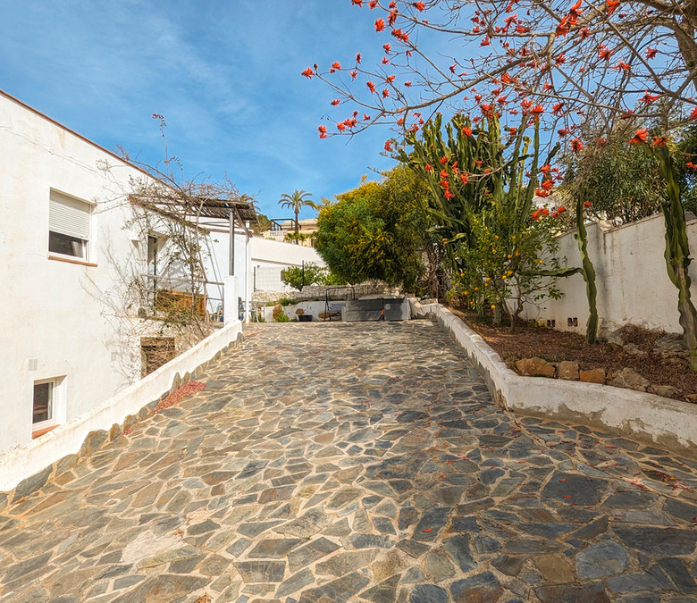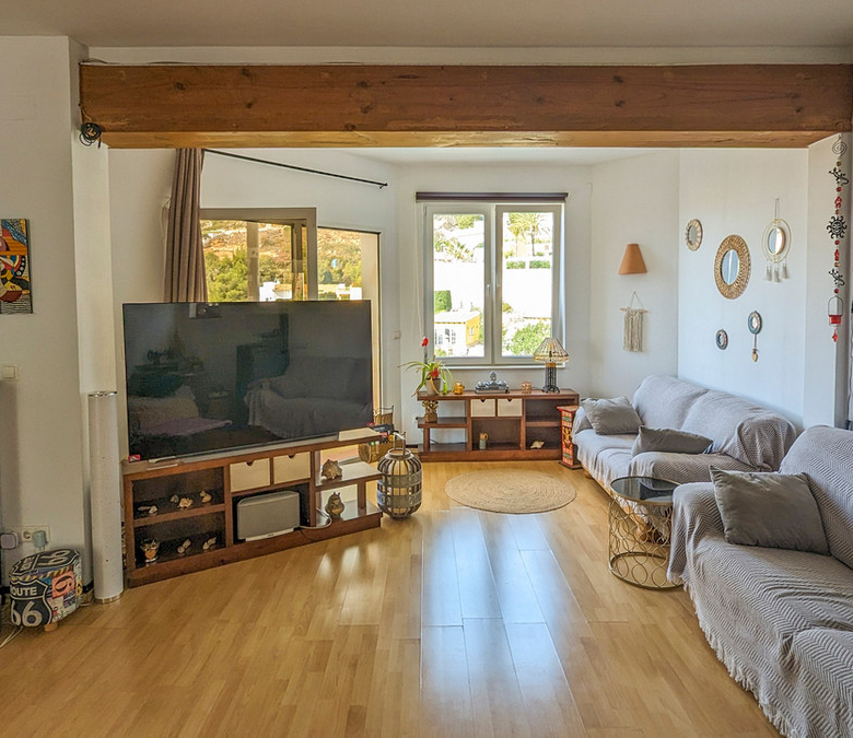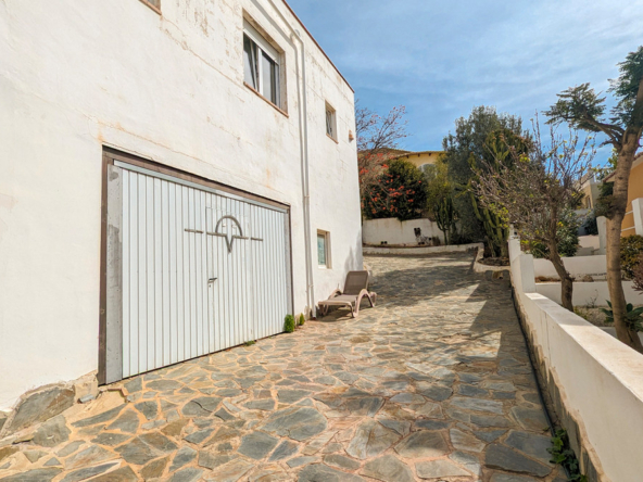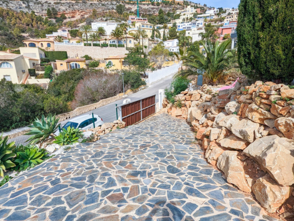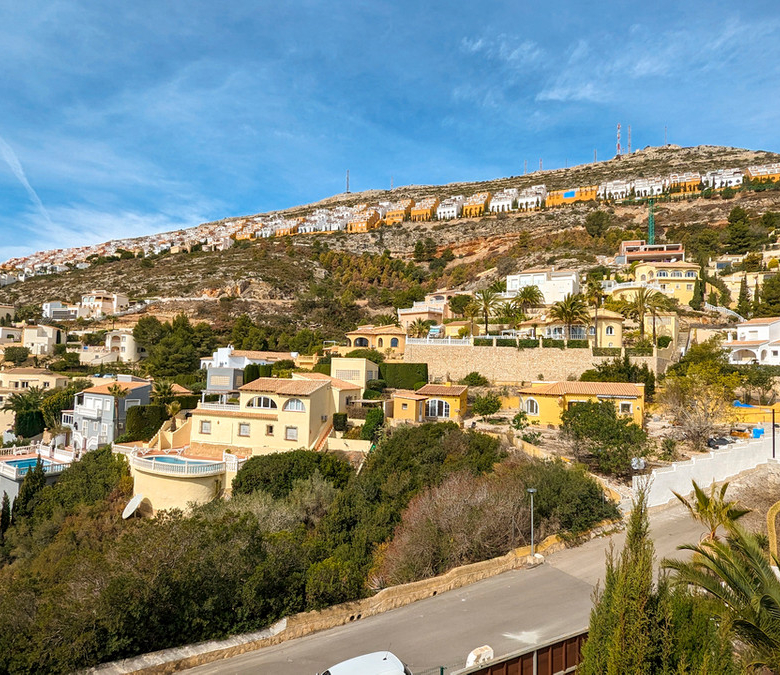 We are happy to bring you this this impressive villa which due to its elevated position and offers panoramic views over the Cumbre del Sol and the sea. It is located just a short distance from the supermarket/farmacia/restaurant and within 5 minutes of the Lady Elizabeth school and the padel courts and bar.Accessed from the road by a sliding gate, a long driveway winds up beside the property, past a large garage to parking for several cars outside the front door. Entering the property there is a reception area with a family shower room and bedroom three off to the right and the master bedroom to the left. The master bedroom and bedroom two share a Jack and Jill style full bathroom with bath and shower. Ahead of the reception area the villa opens out to a large open plan living dining area and the American style kitchen that opens from the Dining area. The dining and living areas receive plenty of light due to having two sets of glass doors that open onto the the covered terrace which offers plenty of space for outside seating, dining and relaxing.Accessed from the driveway, or by a staircase from the upper terrace, there is a second covered terrace that gives access to the independent apartment which comprises of large a living/dining room with an open plan kitchen, a double bedroom with built-in wardrobe, a large shower room and very ample storage areas offering expansion potential.On this level there is a freeform swimming pool from which sea views can be enjoyed, and also a BBQ area with a built in BBQ. The rest of the plot is laid to easy maintenance gardens and secluded sun traps.We highly recommend an early viewing of this property to appreciate its many qualities.