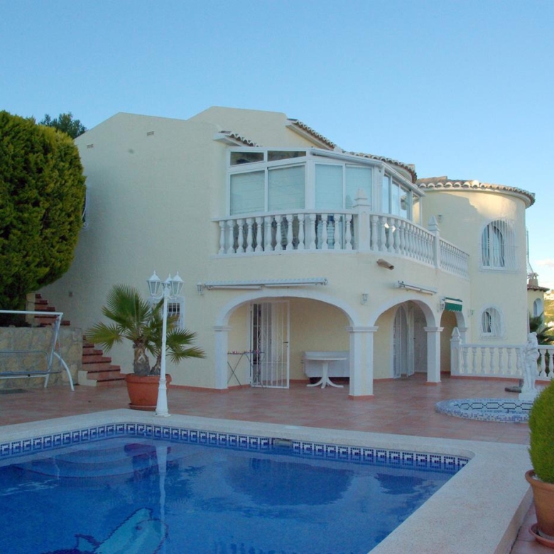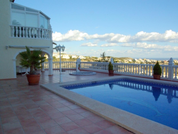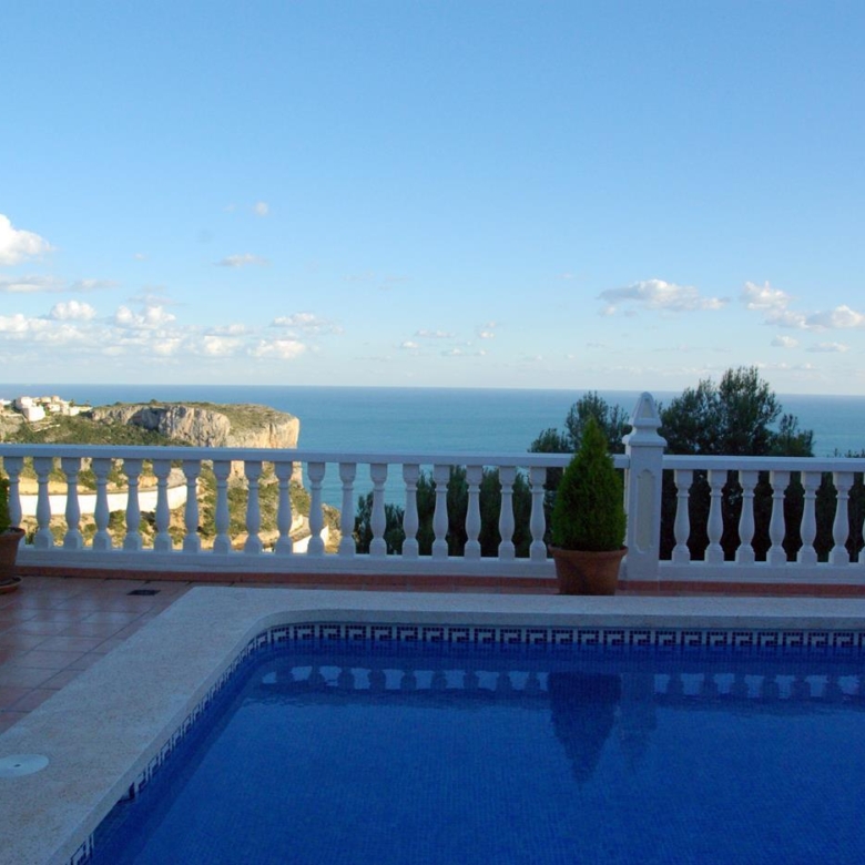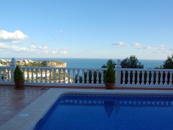 Villa on two floors with sea views, private pool and summer kitchen for sale in the urbanization Cumbre del Sol, Benitachell, Alicante, Costa Blanca, Spain.