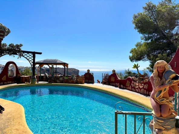Monumental castle style villa with 3 bedrooms and 3 bathrooms, private pool and sea views for sale in the Cumbre del Sol urbanization, Benitachell, Alicante, Costa Blanca, Spain.