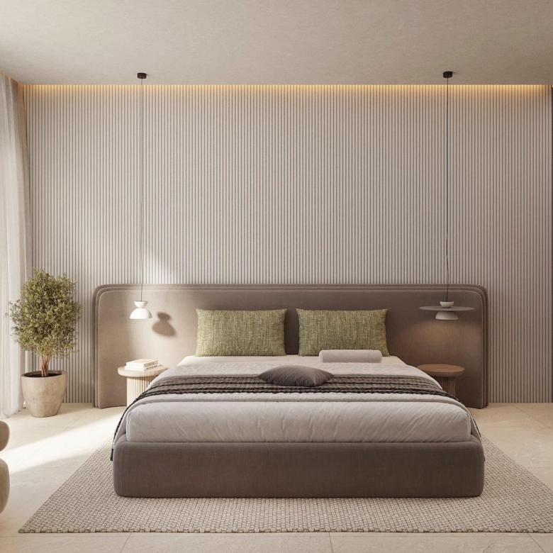The sleeping area is smartly arranged on the right wing of the home, consisting of: