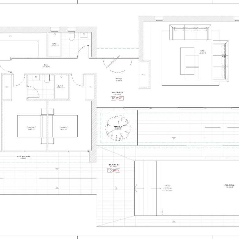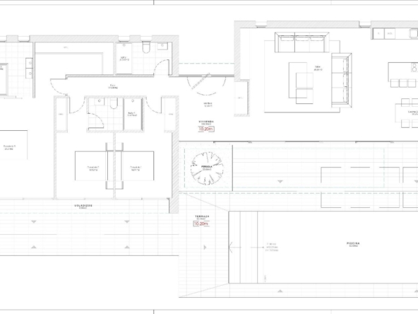 Designed for practicality and ease, the villa is distributed across a single floor, making it ideal for both families and retirees. The entrance leads into a bright hallway, opening up to a spacious open-plan living and dining area with a modern kitchen featuring an island separate utility room. Large sliding doors connect the interior with a covered porch area complete with a built-in barbecue, an expansive terrace, and a private swimming pool of 52 m².