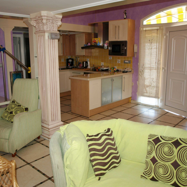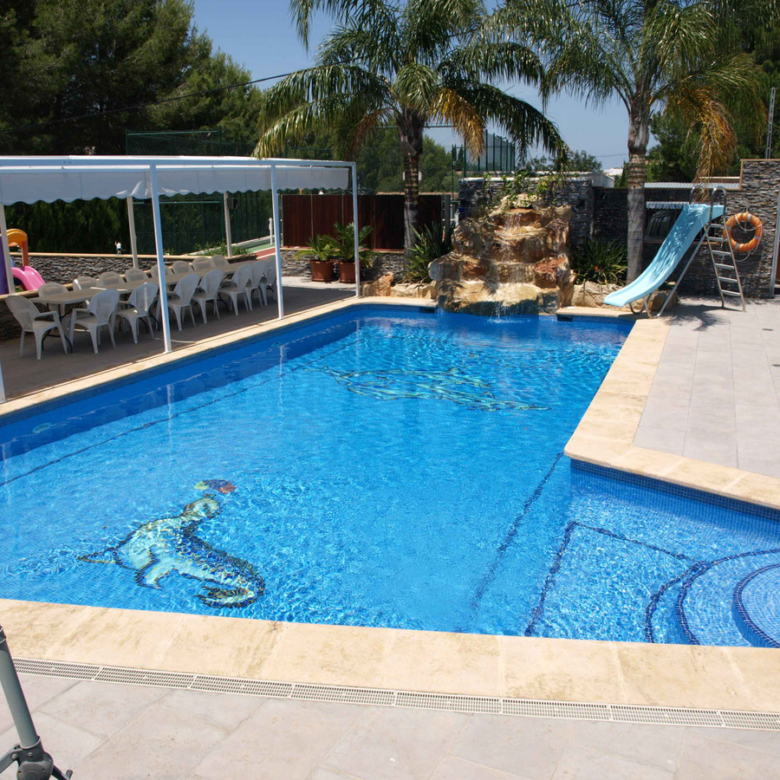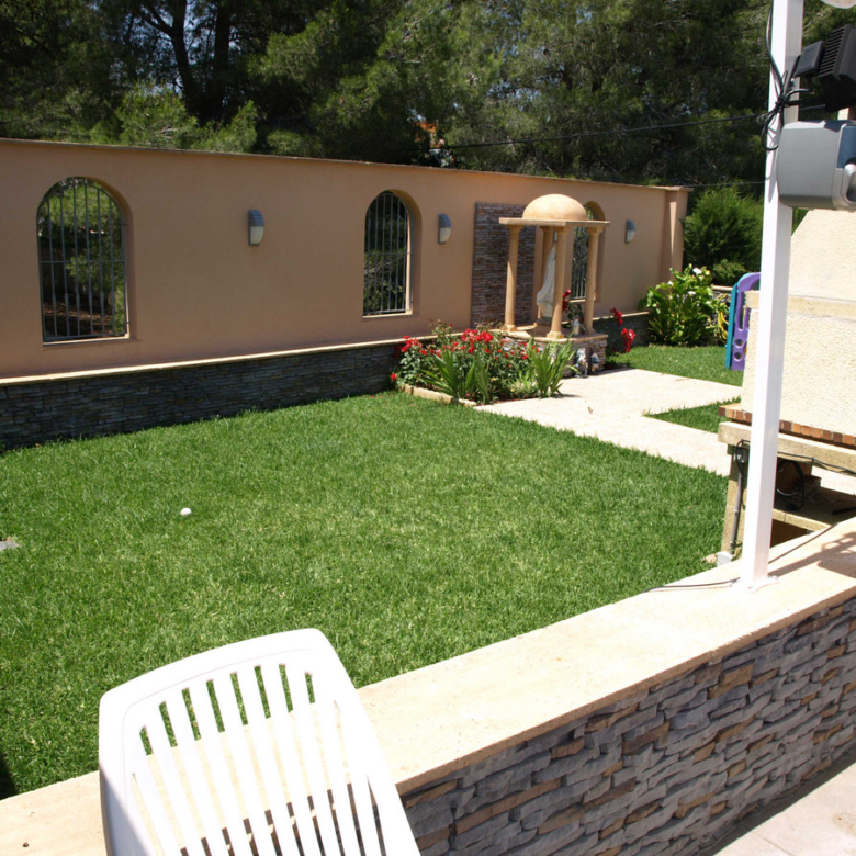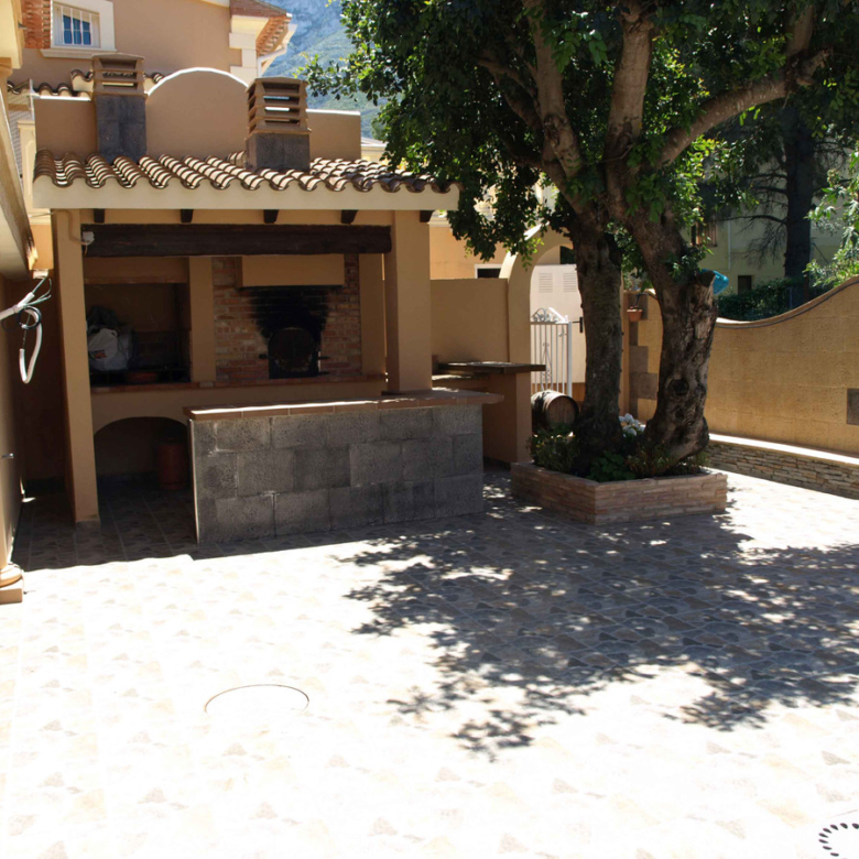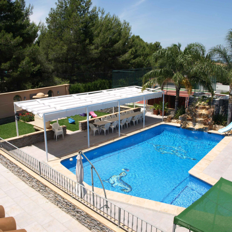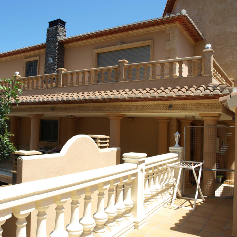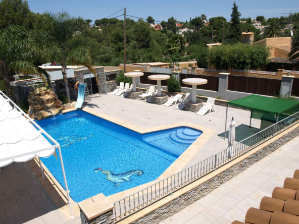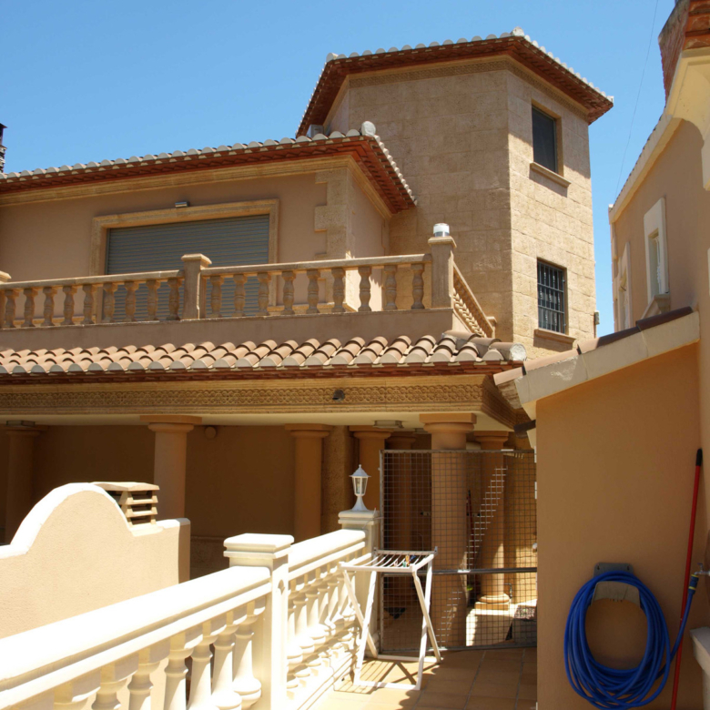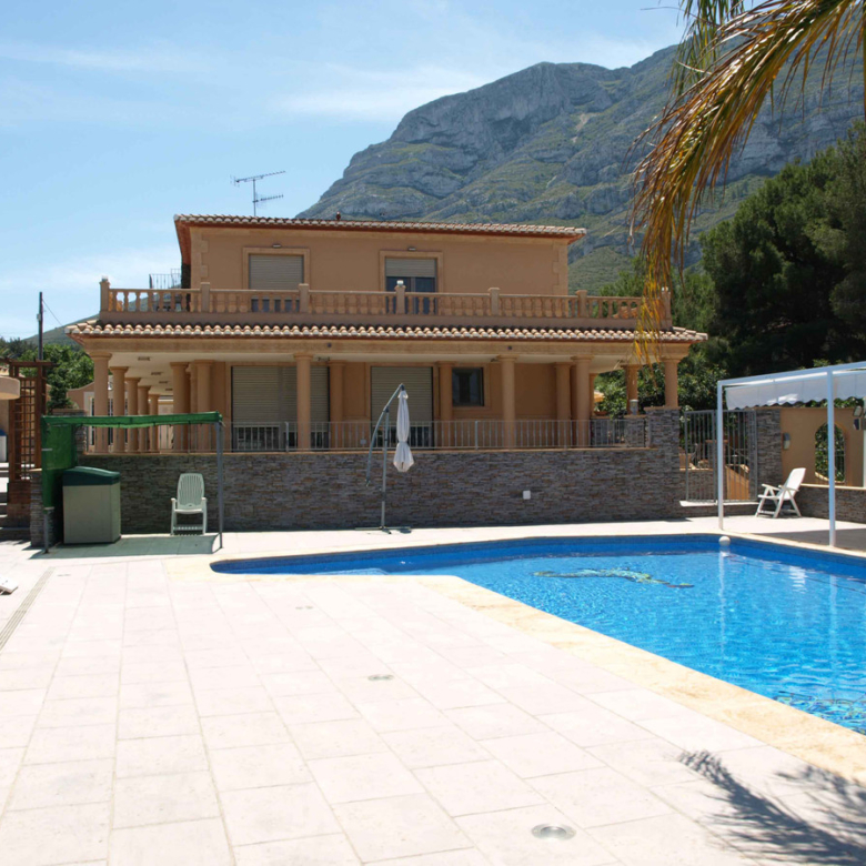 Luxury villa and two apartments with sea view for sale in Denia , built with luxury in a large plot with sea views to Montgo and Denia. The main floor is divided into a large entrance hall , lounge with fireplace , dining room , fully equipped kitchen with high end appliances , with dining area , utility room, office and a toilet. A beautiful marble staircase with stainless steel balustrade leads to the upper floor where there are five four bedrooms , master with dressing room and fireplace , each with its respective bathroom . All have access to a spacious terrace. The fifth bedroom is located on the side tower is in the house and also has a bathroom and terraces. In the semi basement there is a gym, spa , one room with pool parties , karaoke and relaxation area for up to 65 people , and a wine cellar with a nice display of wines . From this area you have direct access to the covered barbecue area with wood stove and summer kitchen. Once outside there is a large swimming pool with waterfall surrounded by a large terrace, several areas with pergolas , benches , tropical garden with automatic irrigation, pond turtles, a race track , a tennis court and parking for several cars with laundromat . Besides all the woodwork inside the house is solid wood and PVC outer with safety glass and aluminum blinds . It also has a modern alarm system connected to the police. Included in the price are two apartments and annexes with the same quality and construction features as the main house , with three bedrooms each , kitchenette and separate pool. Recently reduced from 1,300,000 Euros.