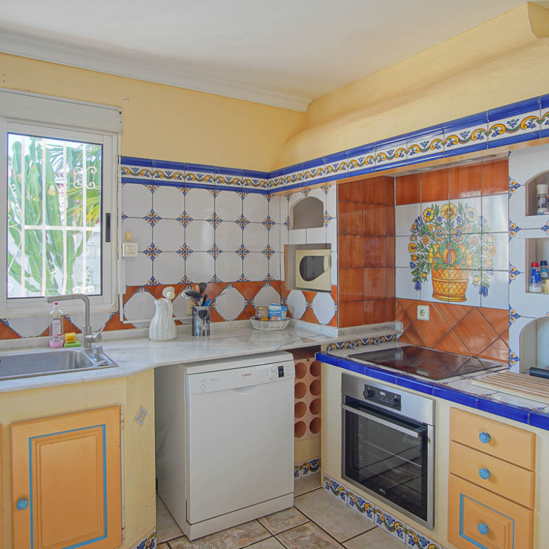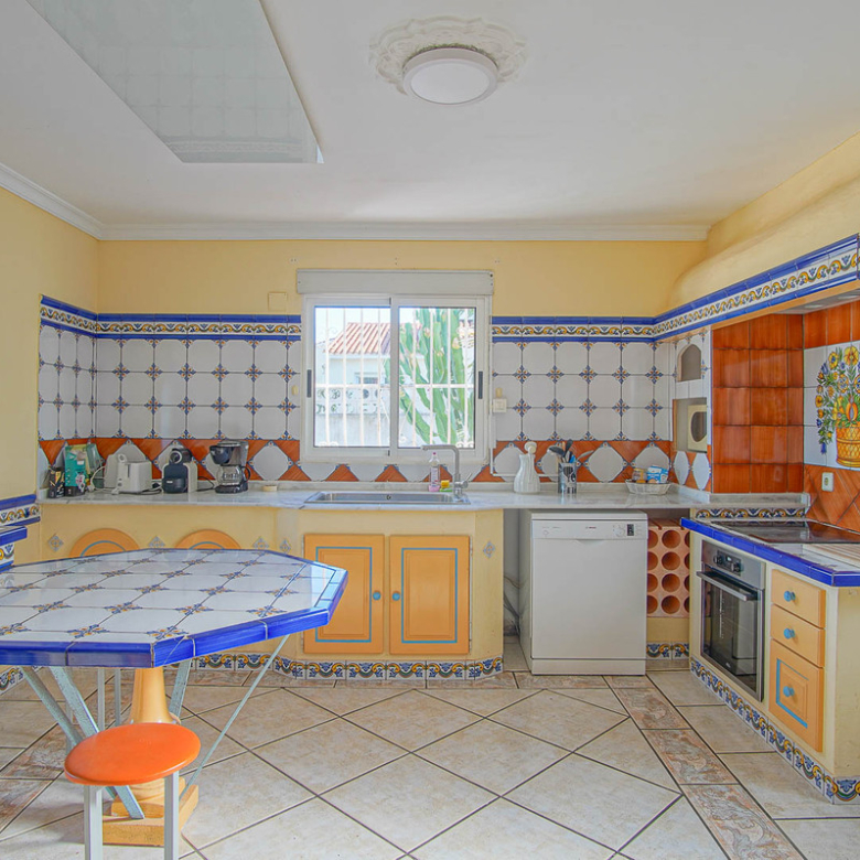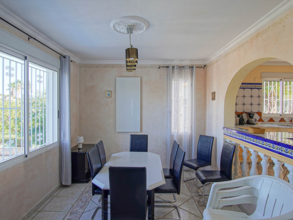 The fully fenced garden of the property is a real oasis, with green areas, palm trees, orange and banana trees. The villa also offers a fantastic sea view and is equipped with a 4 x 10 metre swimming pool with Roman steps, ideal for enjoying the warm summer days. With TV and internet connection, this villa is ready for you to move in and start enjoying life on the Costa Blanca.
