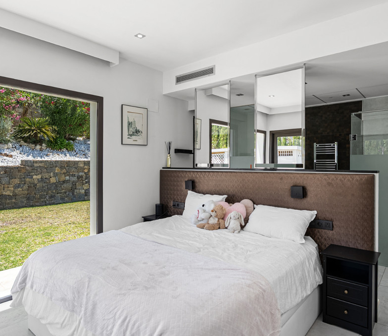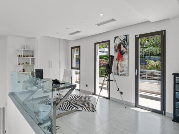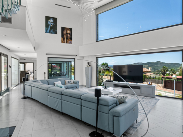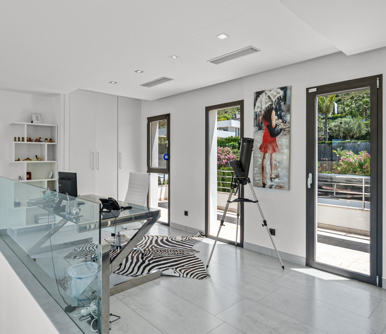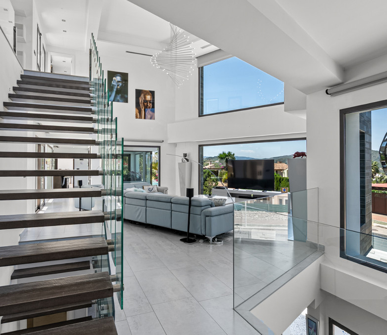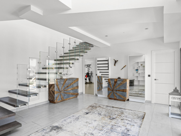 The generously proportioned, modern estate we are pleased to offer through HGH features numerous bedrooms, providing exceptional comfort for both owners and guests alike. Every corner of this home has been thoughtfully designed to evoke a sense of elegance and harmonious aesthetics. The architecture maximizes natural light and breathtaking views, flowing through large windows and an impressive double-height living room with a dedicated office area. The upper level, characterized by panoramic vistas, exudes unmatched tranquility and warmth, enhancing the home’s luxurious ambiance.
