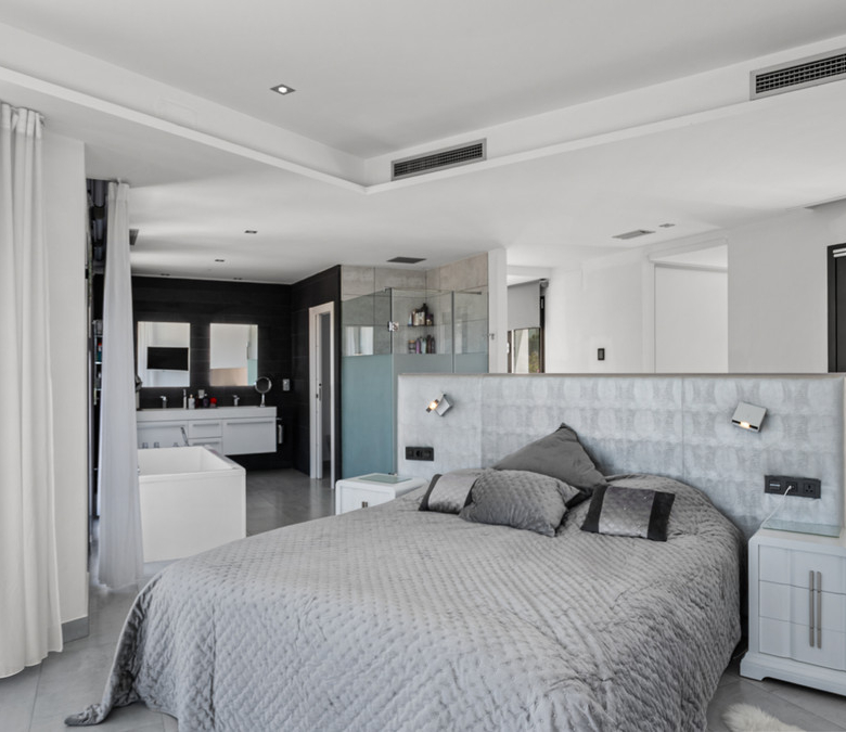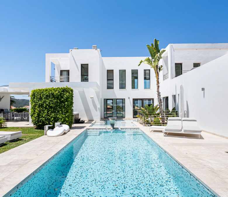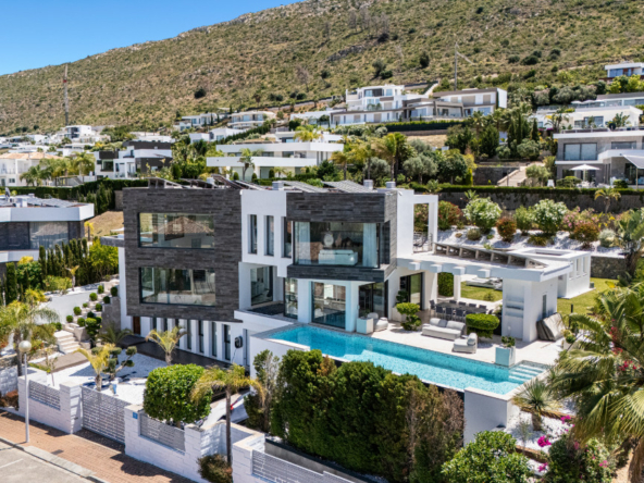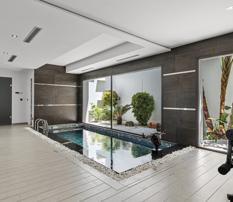 If a luxury villa can rival the amenities, design, style, and quality of the world’s finest resorts, it is undoubtedly an exceptional property. This residence stands out not only for its unique and refined architectural lines, but also for its impressive features: two outdoor pools, a climate-controlled indoor pool, a fitness area, a Turkish bath, a garage, a state-of-the-art home automation system, and eco-friendly solar panels.