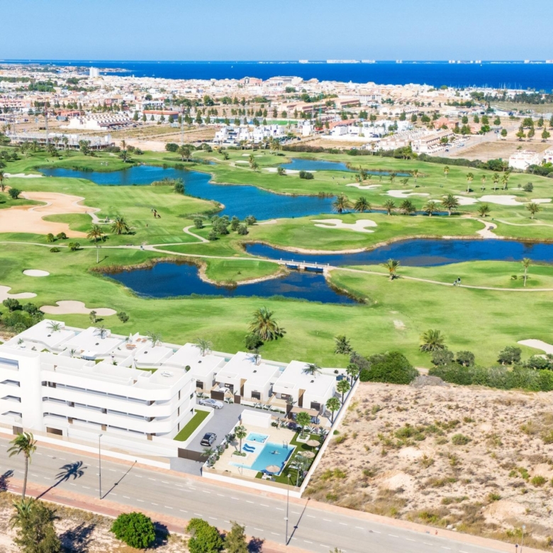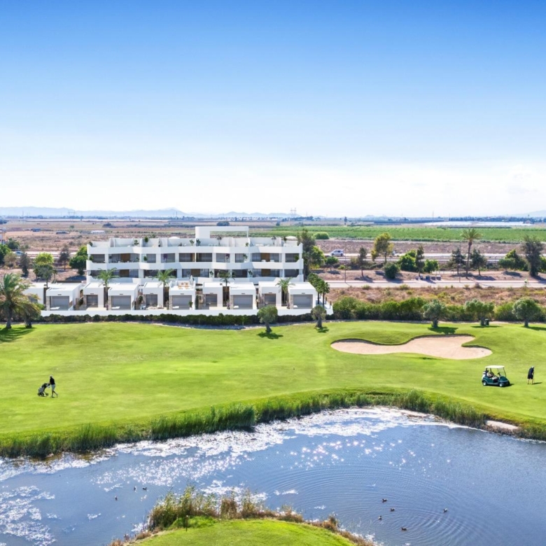 The residential complex features a selection of 16 modern 2 and 3 bedroom apartments, alongside 6 exclusive 3 bedroom villas. Each home is designed to marry contemporary aesthetics with high-quality materials and functional layouts. For those seeking a touch of luxury, there is an option to add a solarium for an extra charge. Your new home will not only be stylish but will also offer breathtaking views of the nearby golf course and the serene Mar Menor.